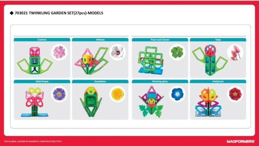 Lichte en duurzame onderdelen met hoogwaardige magneten klikken intuïtief in elkaar, waardoor bouwen eenvoudig en vloeiend is. Alle sets en onderdelen van Magformers zijn volledig compatibel, zodat je de collectie kunt uitbreiden en steeds grotere modellen kunt creëren van vierkanten, driehoeken, rechthoeken en andere vormen. De magnetische bouwset van Magformers ondersteunt STEM-leren en ontwikkelt logica, verbeeldingskracht en geduld.