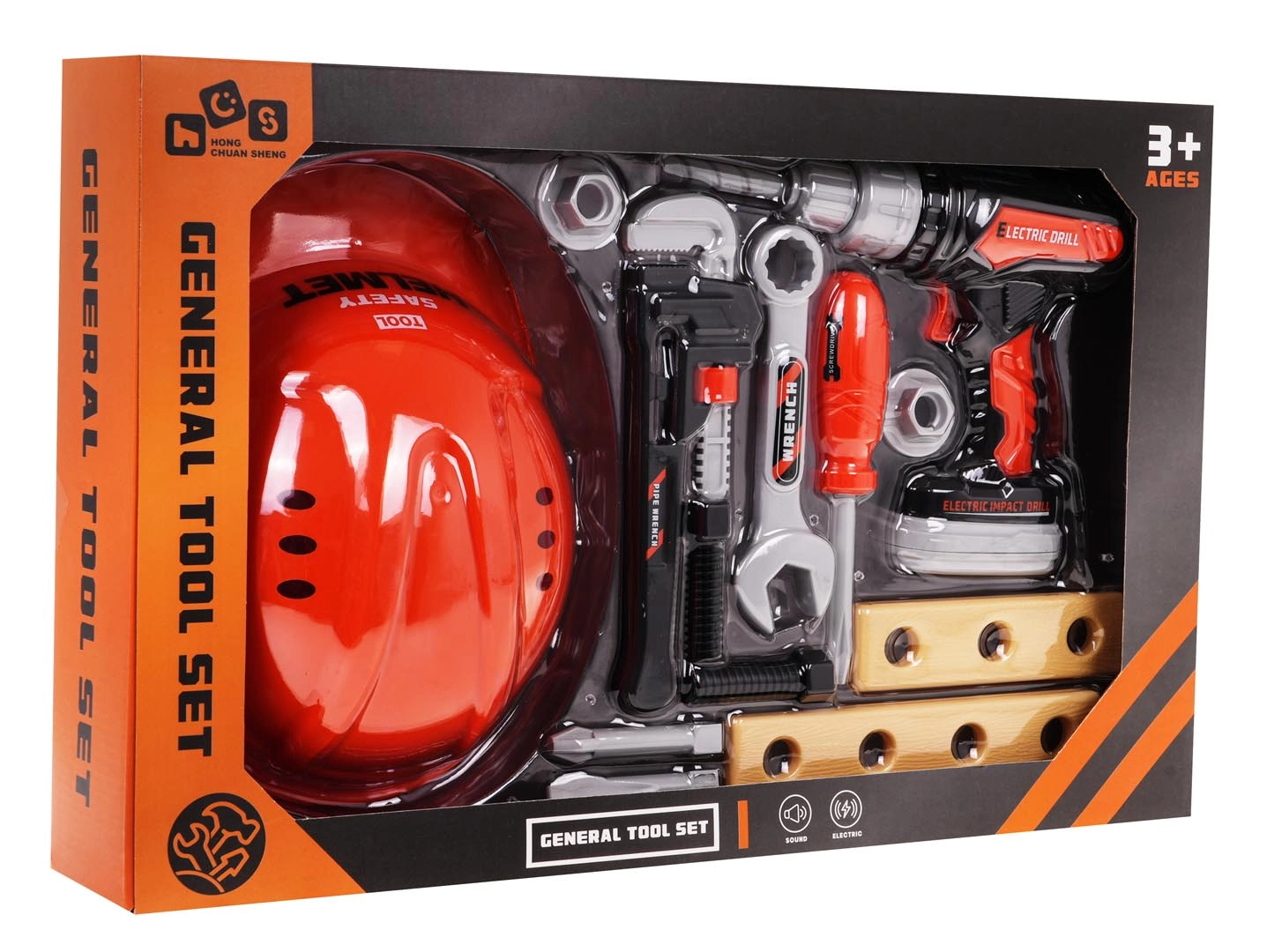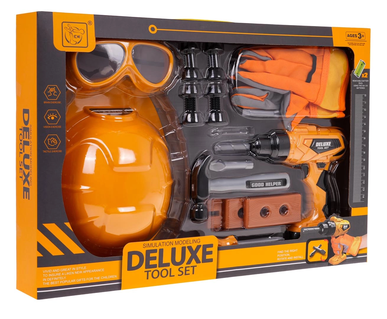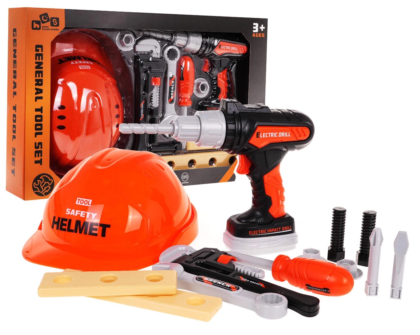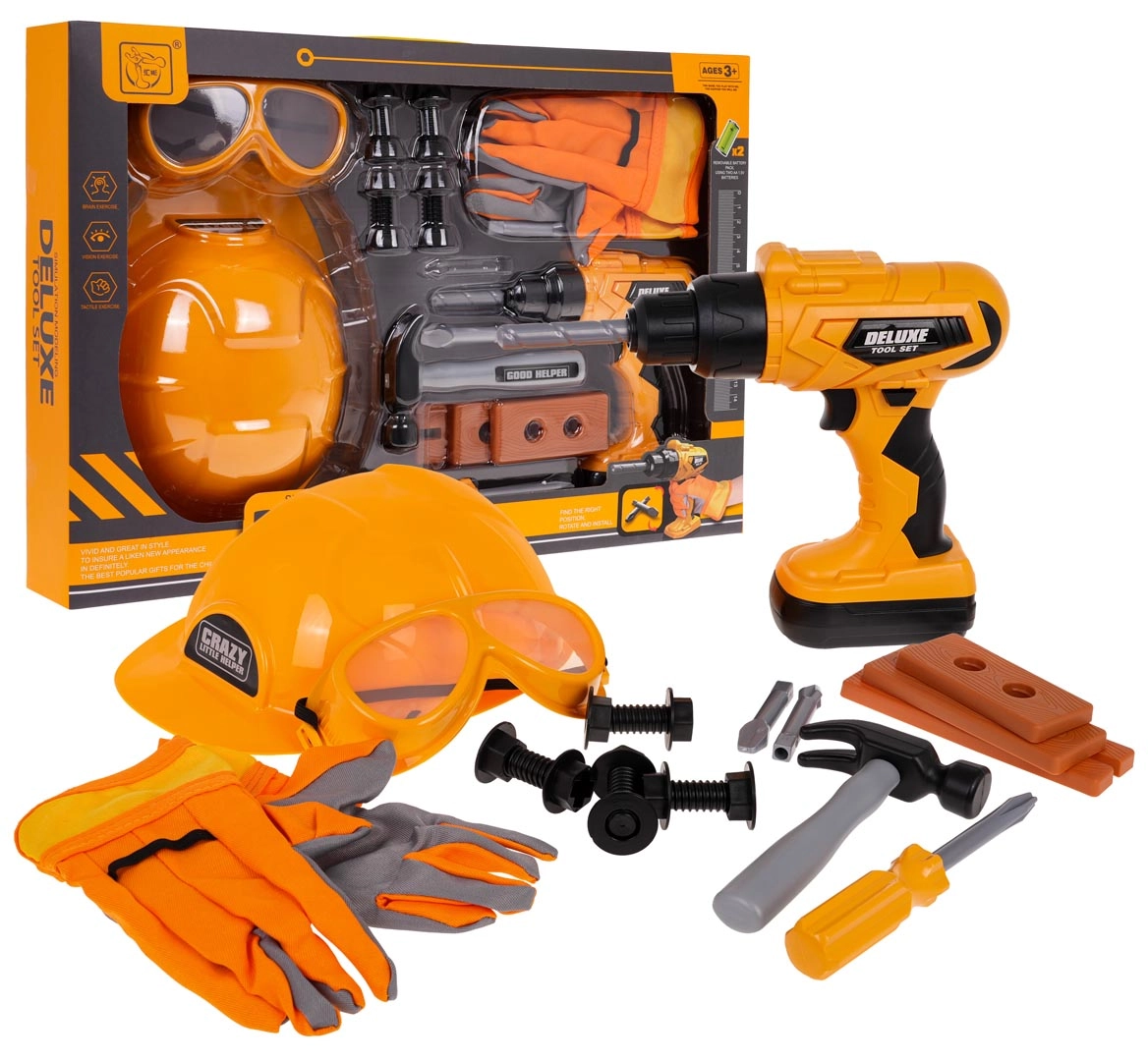 Kinder gereedschapsset met helm en interactieve boormachine