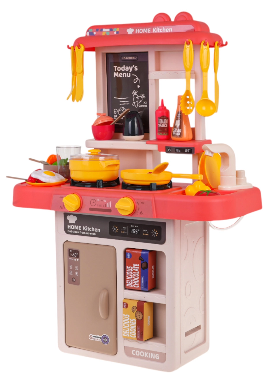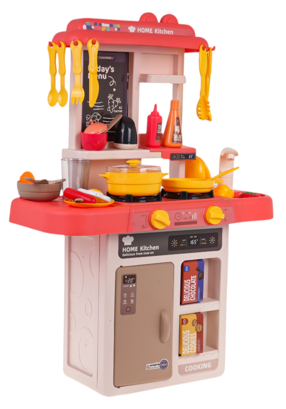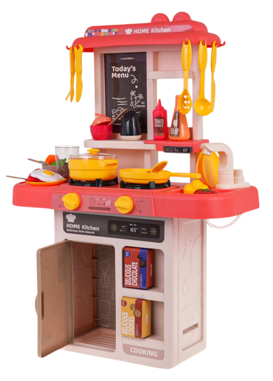 Interactieve kinderkeuken met stoom, licht en geluid, 80 delen – Rood