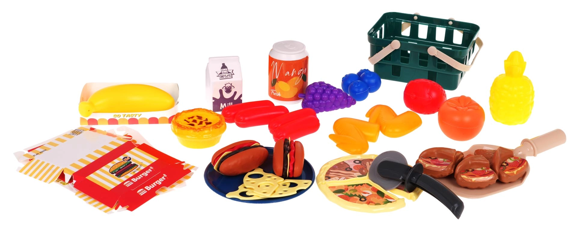 Kinderboodschappenmand met etenswaren, metalen