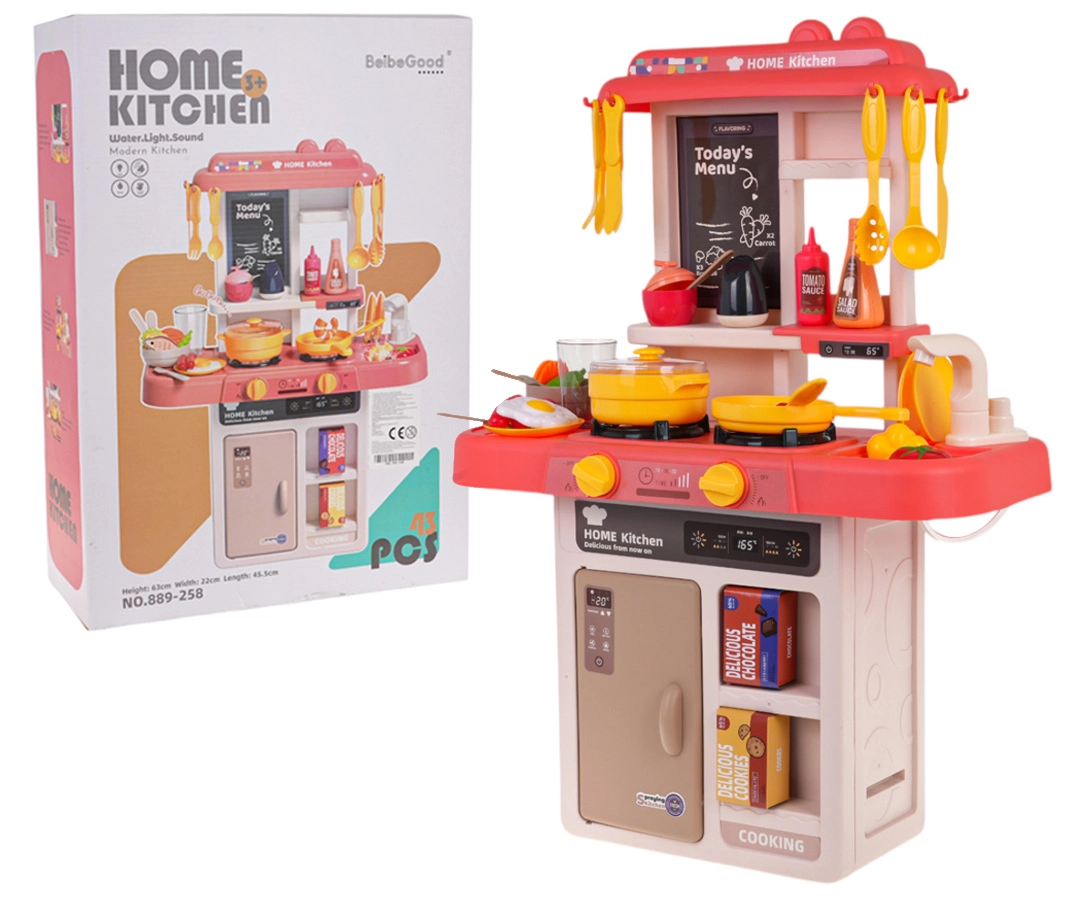 Kinderkeuken met verlichting en geluiden, 43 onderdelen – Roze