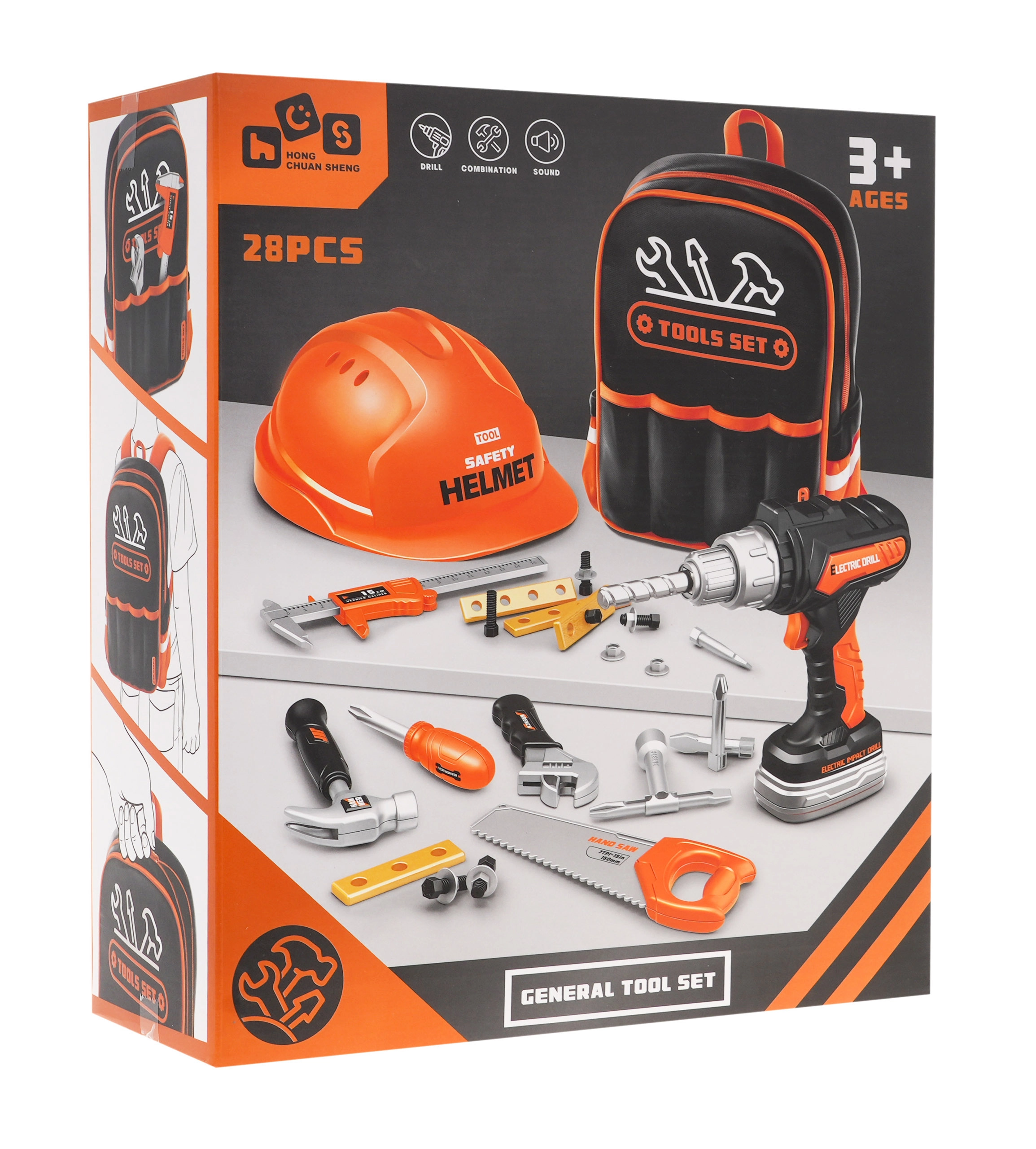 Kindergereedschapsset met helm, 20 stuks