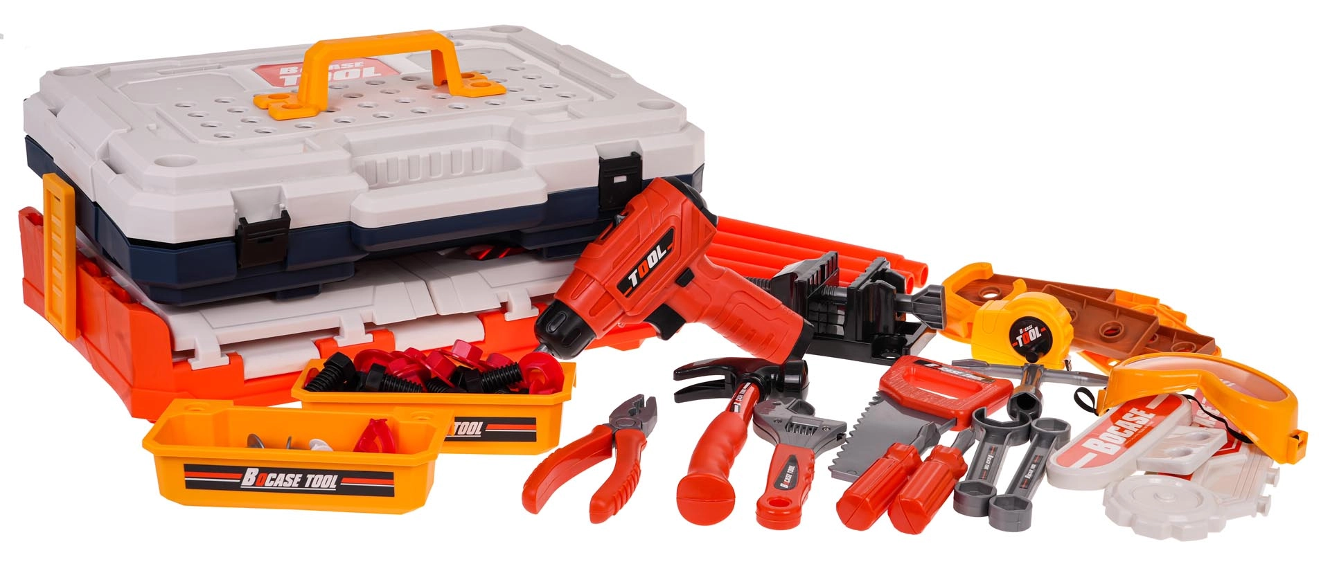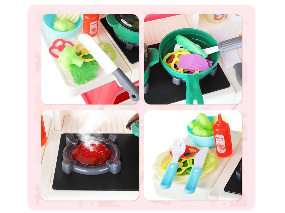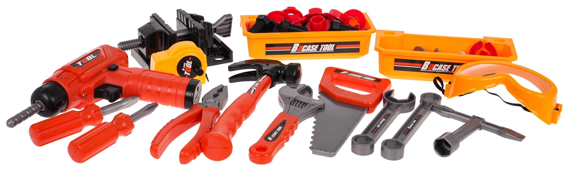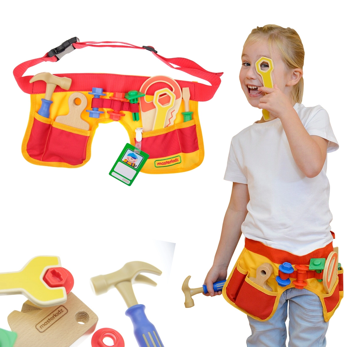 In het assortiment vind je kinderkostuums en speelsets: een kinderkeuken en uitrusting voor kleine koks, een doktersset voor kinderen met stethoscoop, verbanden en speel-medicijnen, een kinderkassa en winkelmandje, en ook kindergereedschap, een werkbank en beschermingsmiddelen voor in de werkplaats. De rekwisieten zijn gemaakt van veilige materialen (hout en kunststof), gecertificeerd en onschadelijk, gedetailleerd afgewerkt, prettig in de hand en stevig genoeg voor dagelijks spel; ze ontwikkelen fijne motoriek, communicatie, samenwerking en logisch denken.