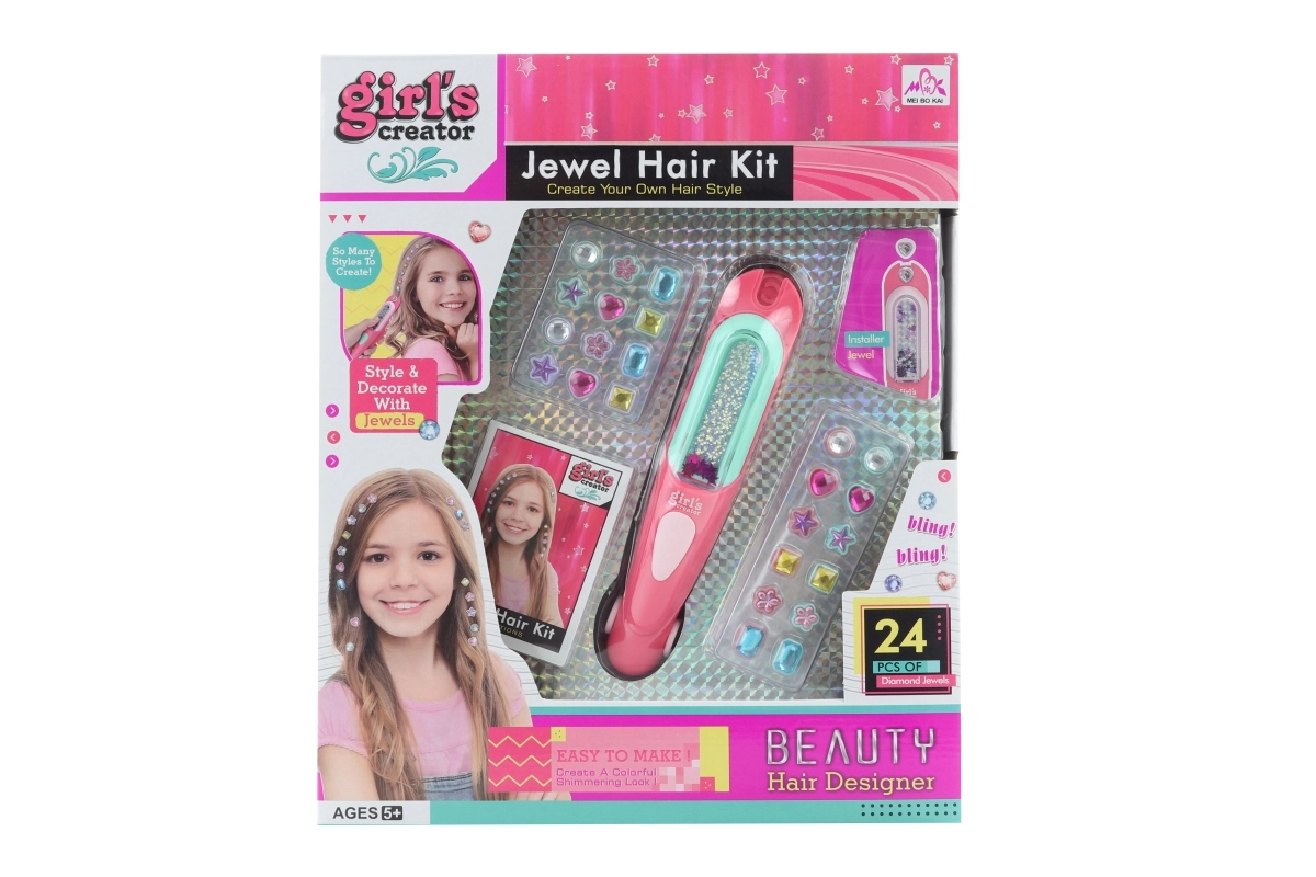 Set voor het versieren van haar met applicator en kralen 24 stuks