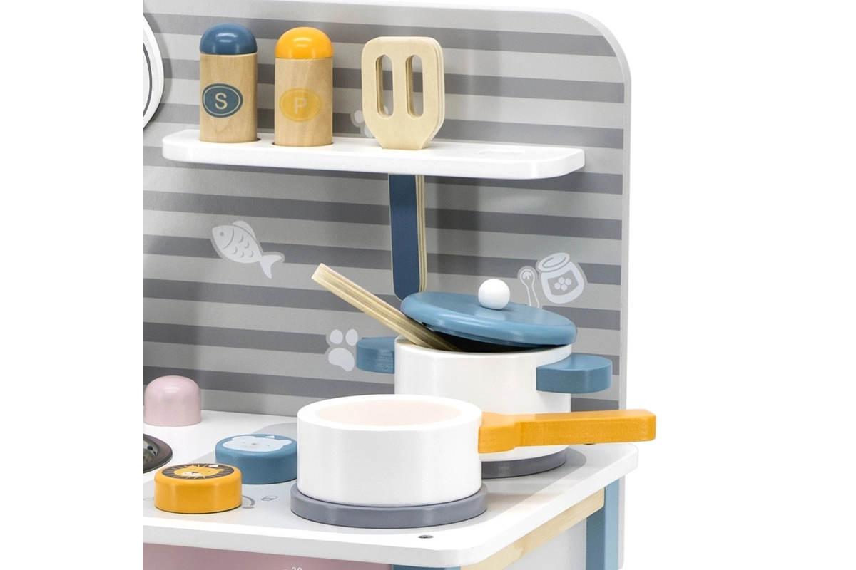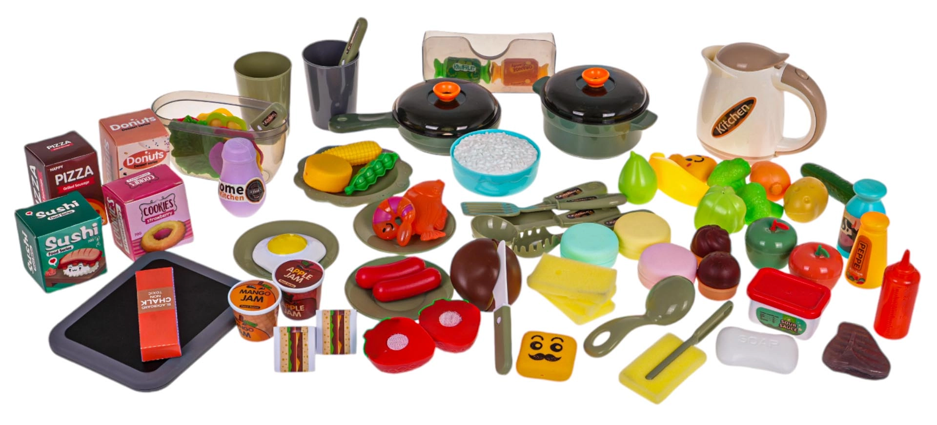 In het assortiment vind je kinderkostuums en speelsets: een kinderkeuken en uitrusting voor kleine koks, een doktersset voor kinderen met stethoscoop, verbanden en speel-medicijnen, een kinderkassa en winkelmandje, en ook kindergereedschap, een werkbank en beschermingsmiddelen voor in de werkplaats. De rekwisieten zijn gemaakt van veilige materialen (hout en kunststof), gecertificeerd en onschadelijk, gedetailleerd afgewerkt, prettig in de hand en stevig genoeg voor dagelijks spel; ze ontwikkelen fijne motoriek, communicatie, samenwerking en logisch denken.