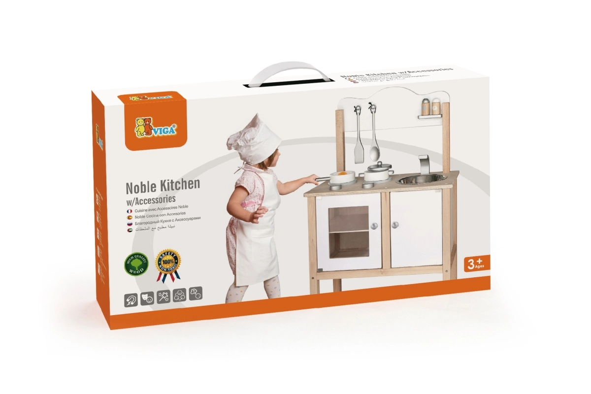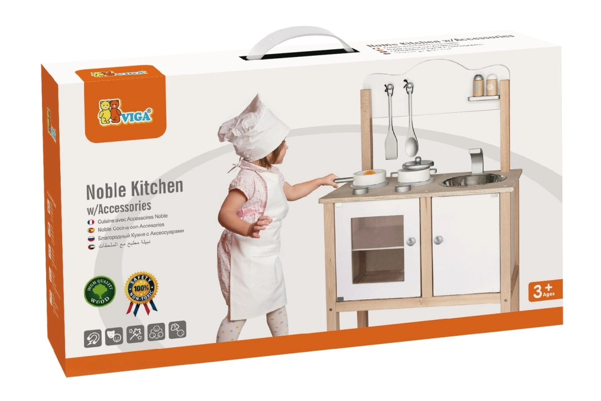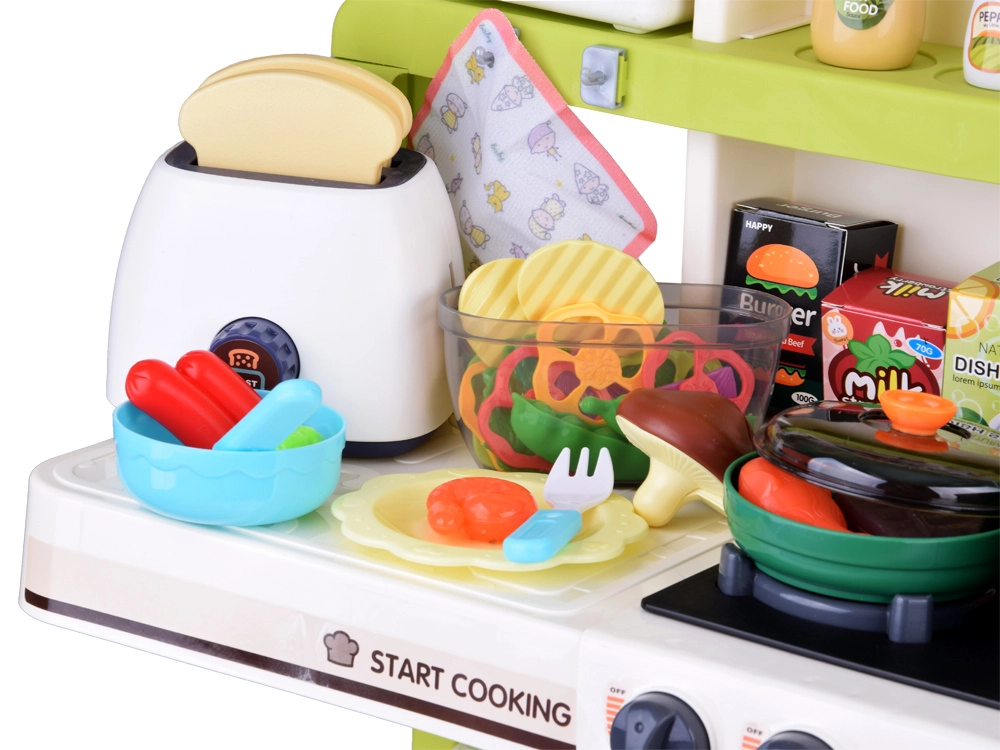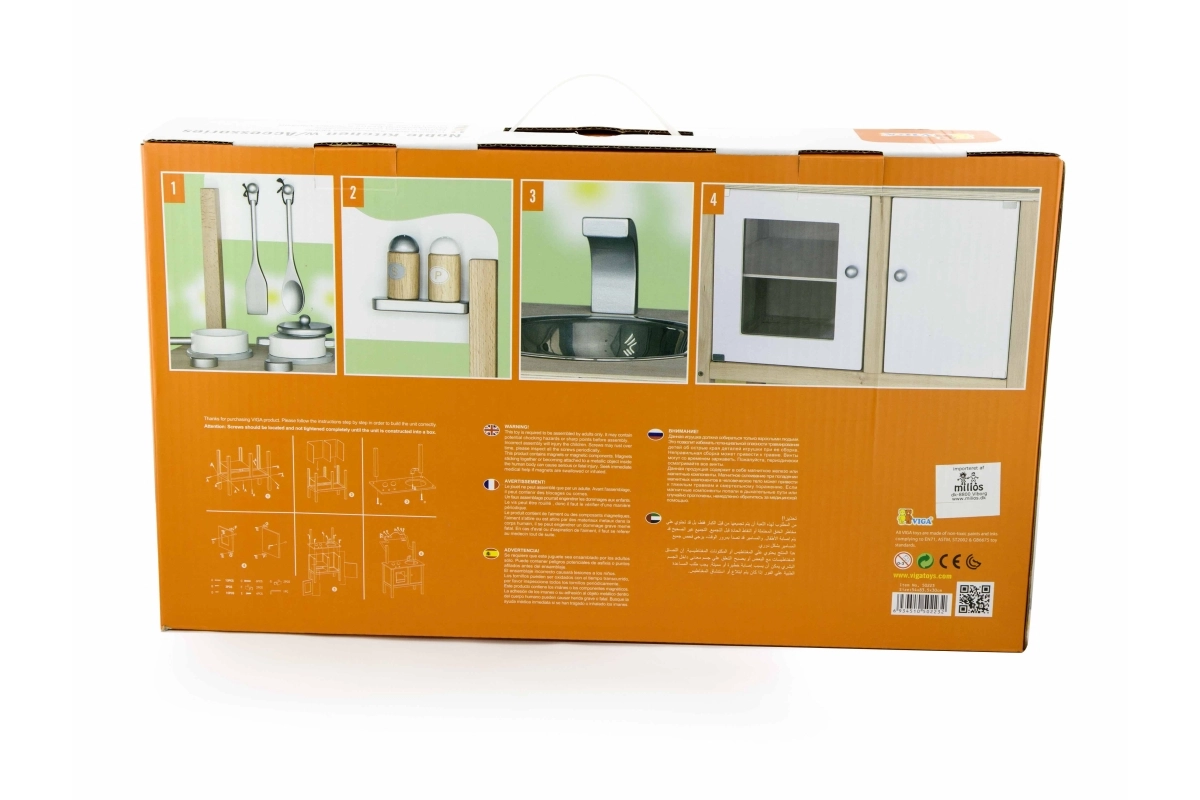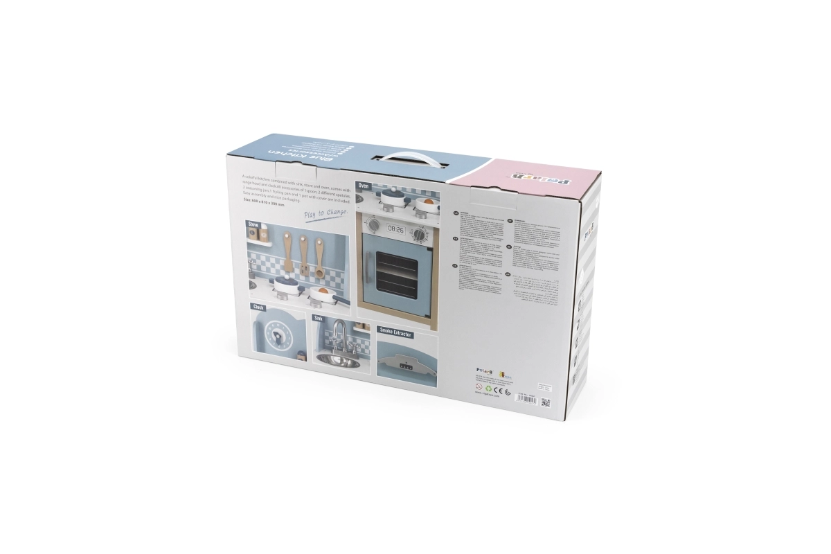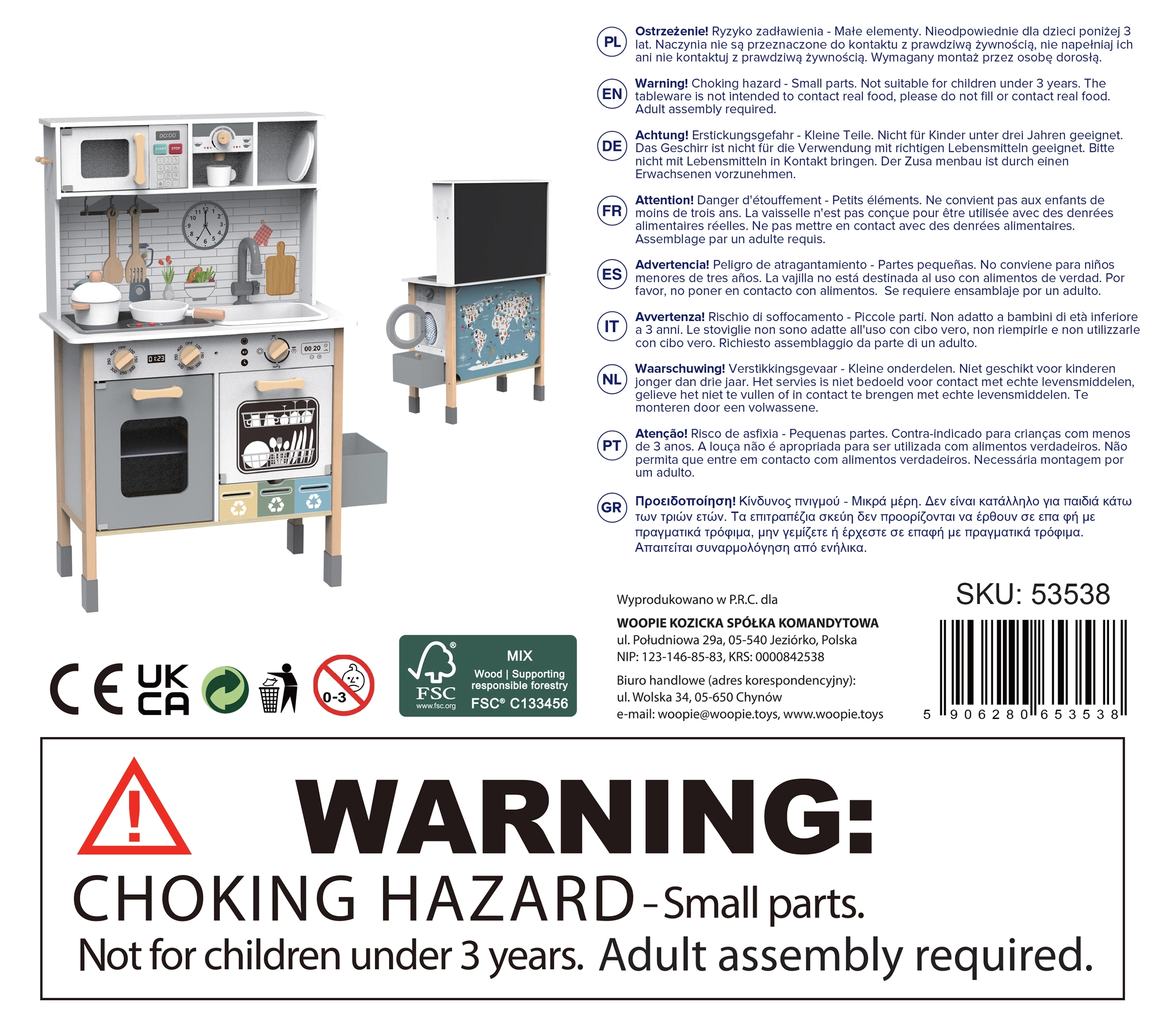 In het assortiment vind je kinderkostuums en speelsets: een kinderkeuken en uitrusting voor kleine koks, een doktersset voor kinderen met stethoscoop, verbanden en speel-medicijnen, een kinderkassa en winkelmandje, en ook kindergereedschap, een werkbank en beschermingsmiddelen voor in de werkplaats. De rekwisieten zijn gemaakt van veilige materialen (hout en kunststof), gecertificeerd en onschadelijk, gedetailleerd afgewerkt, prettig in de hand en stevig genoeg voor dagelijks spel; ze ontwikkelen fijne motoriek, communicatie, samenwerking en logisch denken.
