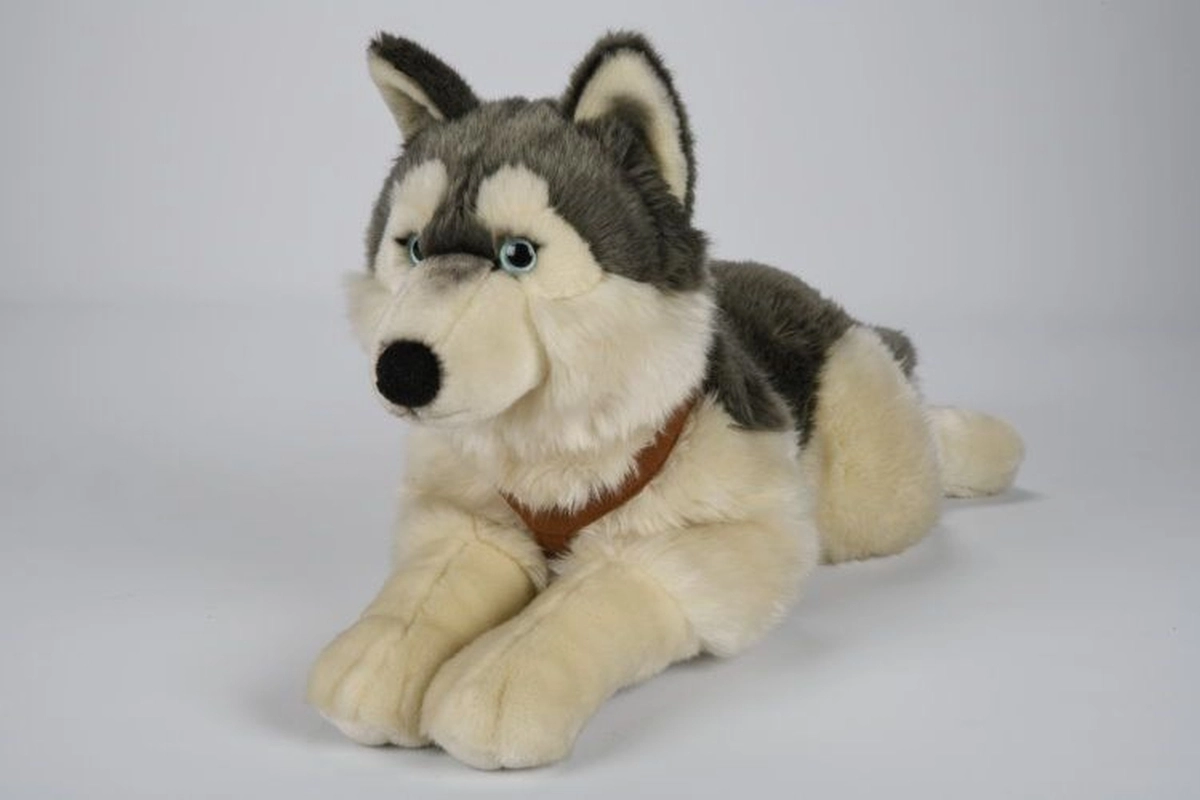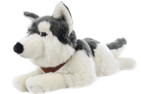 Pluche husky liggend met riemen 60 cm