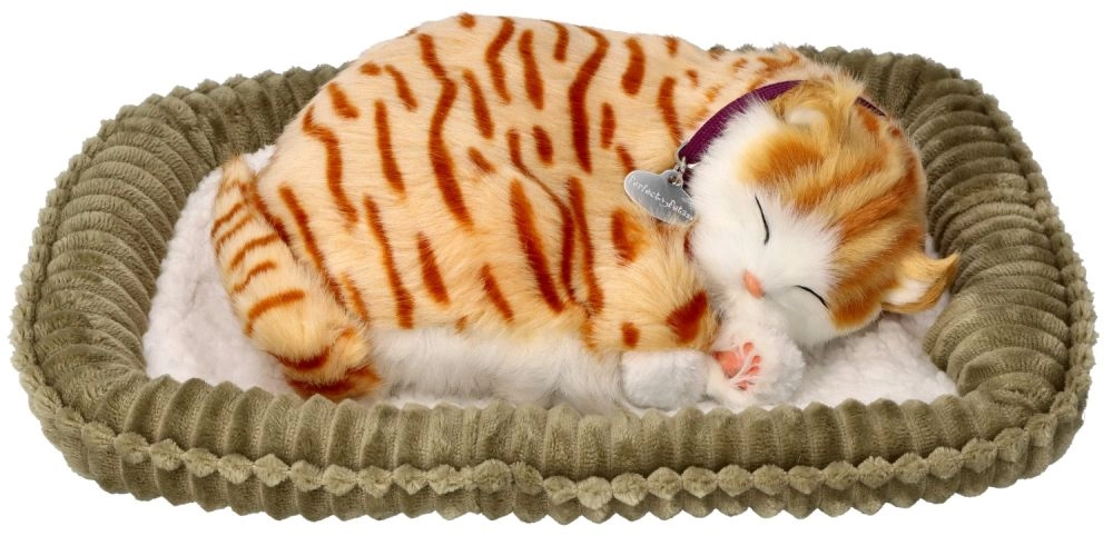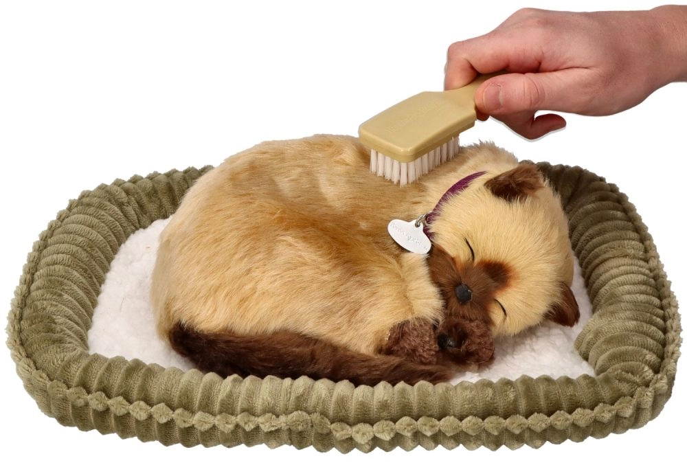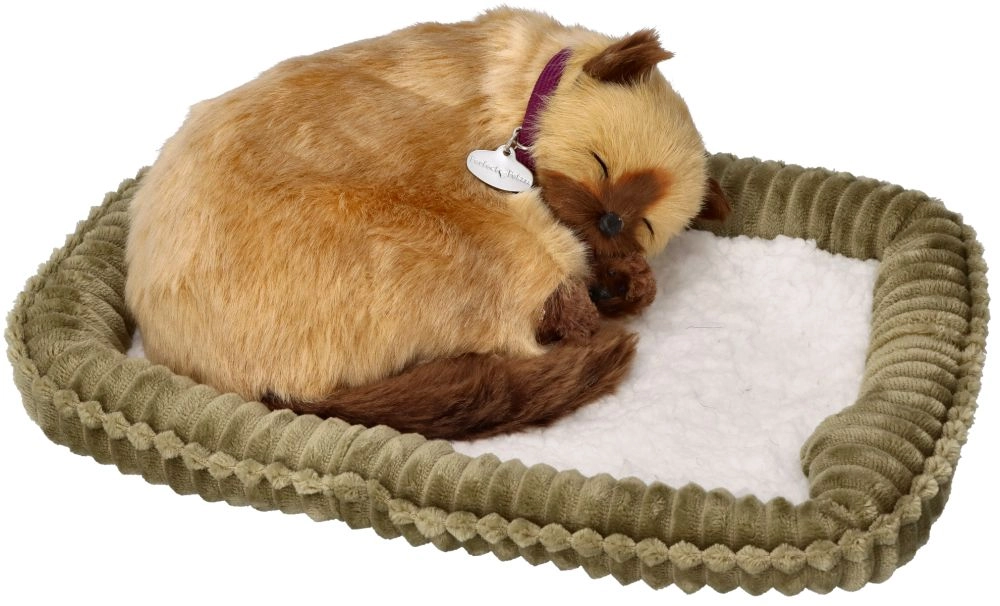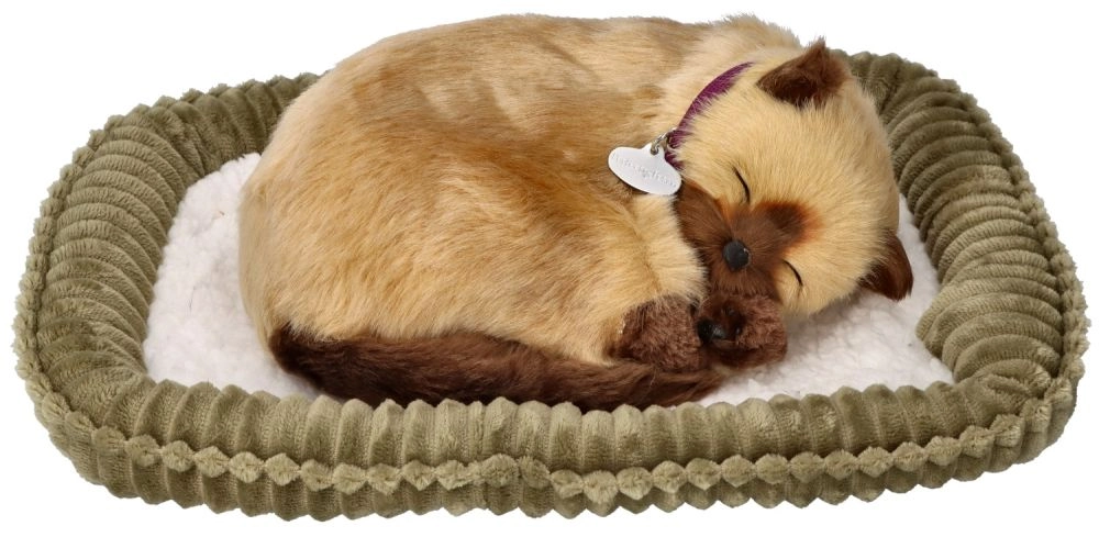 Ademend Siamees kitten – realistische pluchen kat op een kussentje