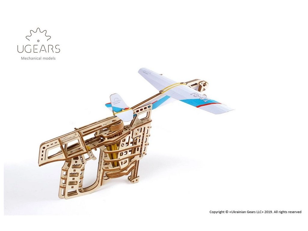 Ugears 3D houten mechanische puzzel lanceervliegtuig
