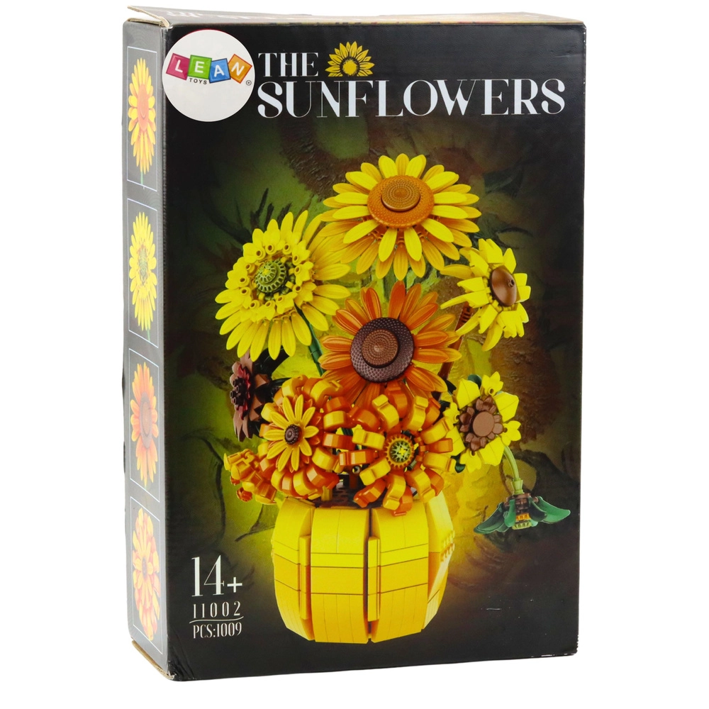Bouwset zonnebloemenboeket in vaas, 1009 stukjes