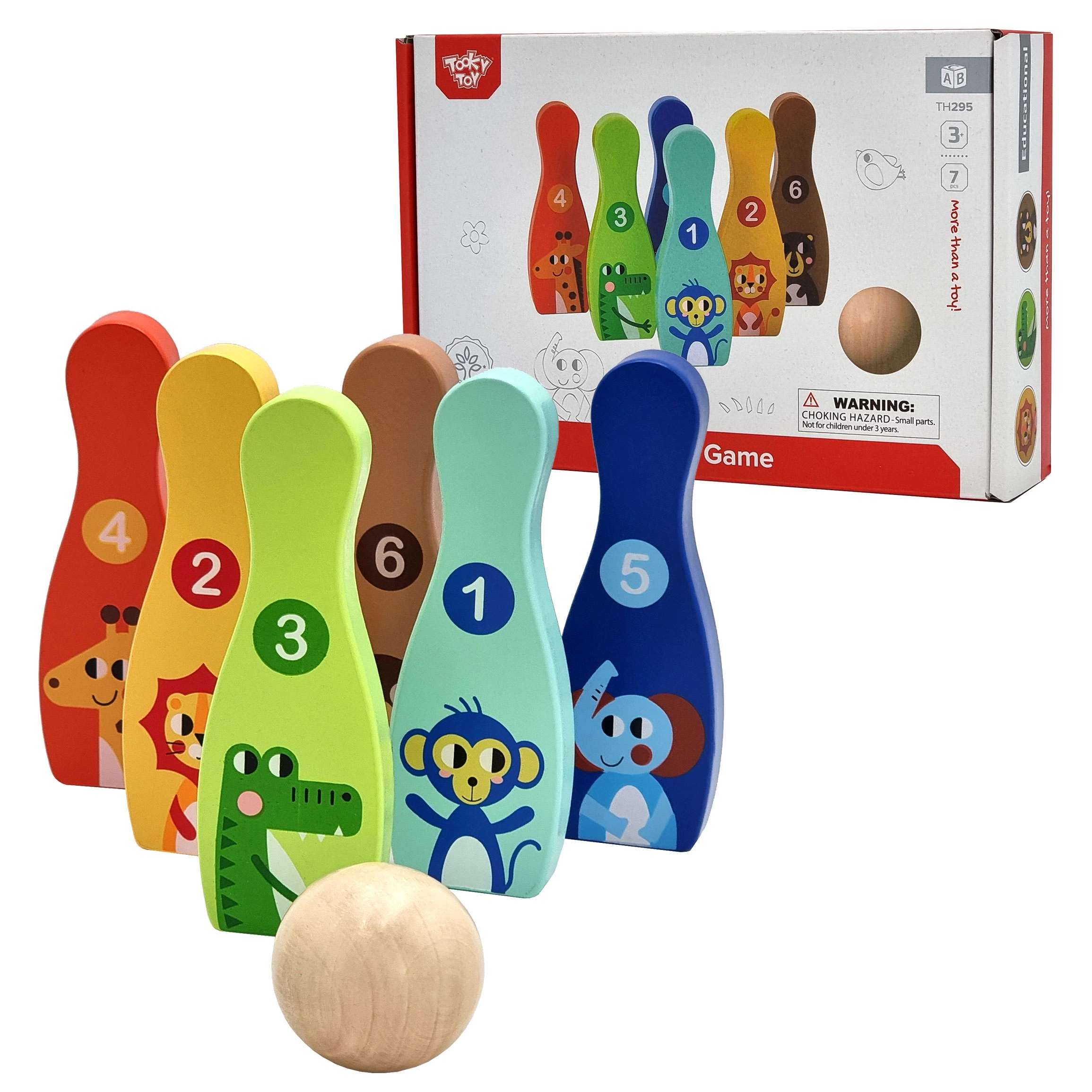 Houten kinderkegels met dieren 6 stuks + bal TOOKY TOY