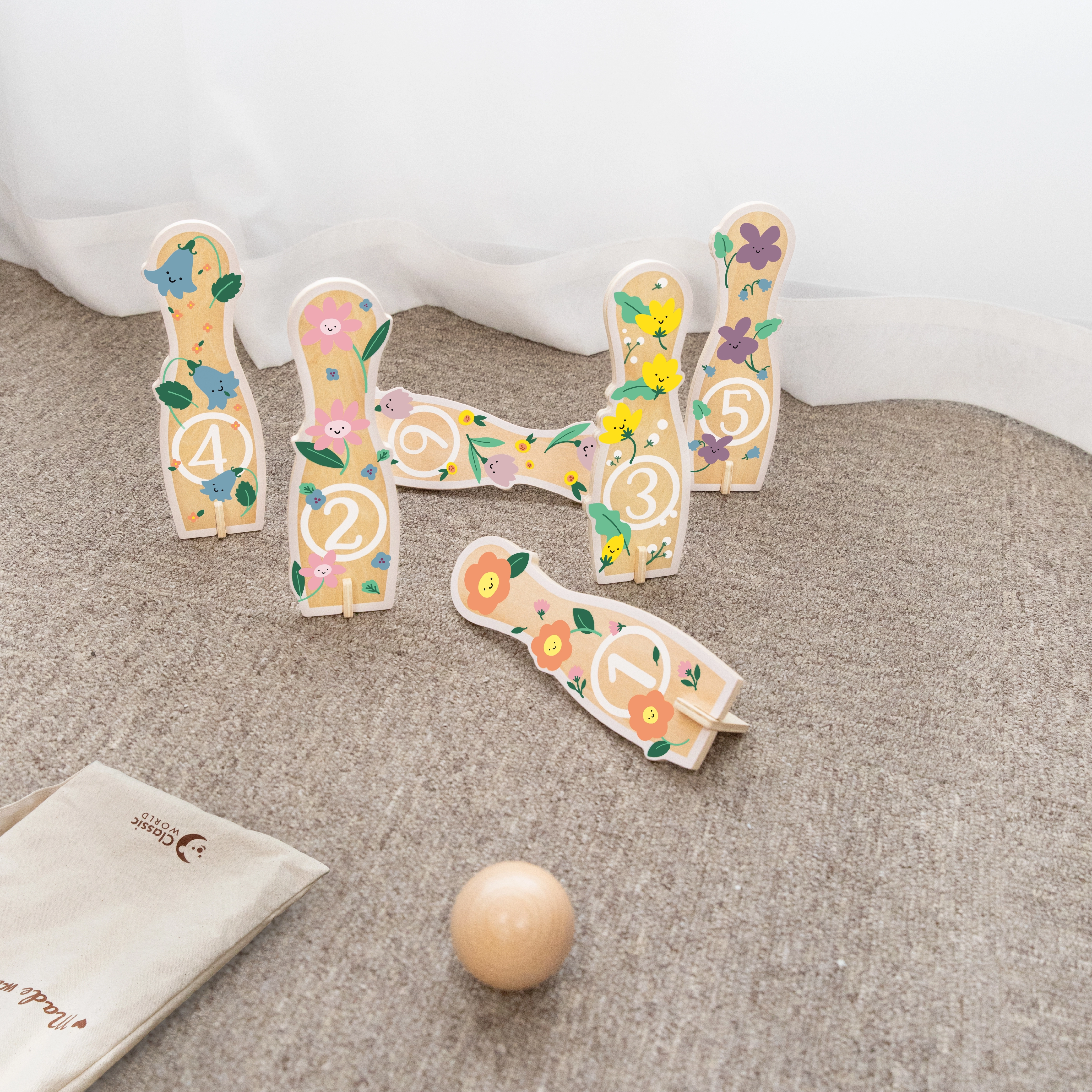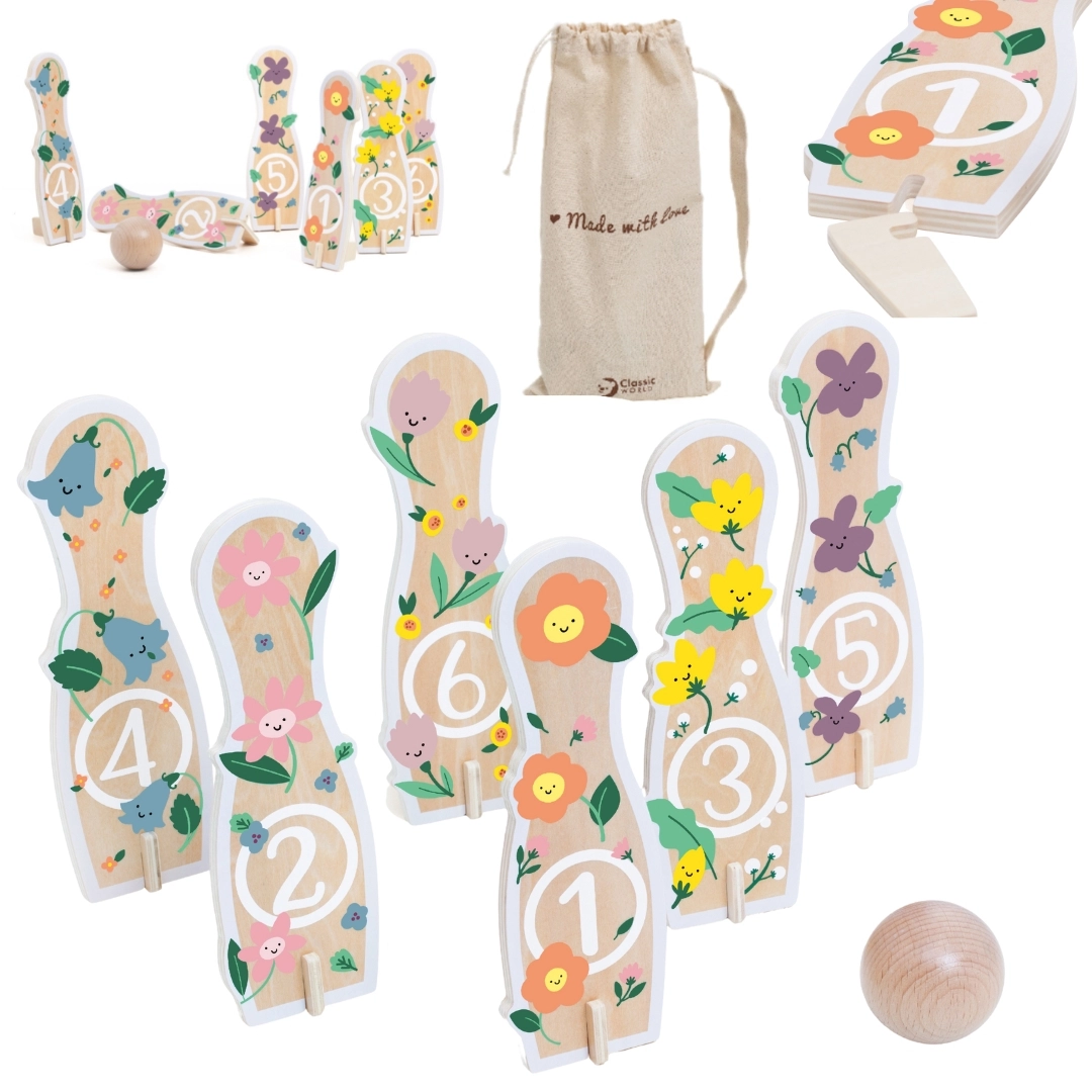 Houten kegels voor kinderen 6 stuks met bal CLASSIC WORLD