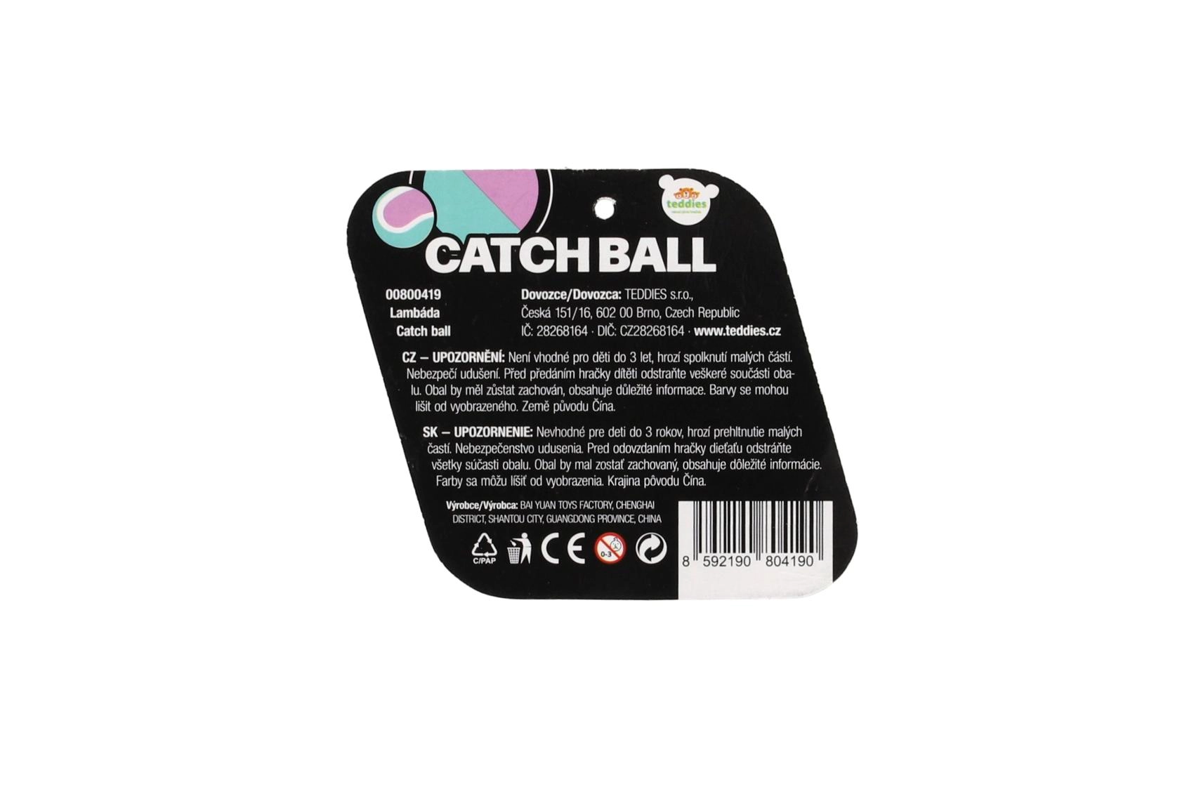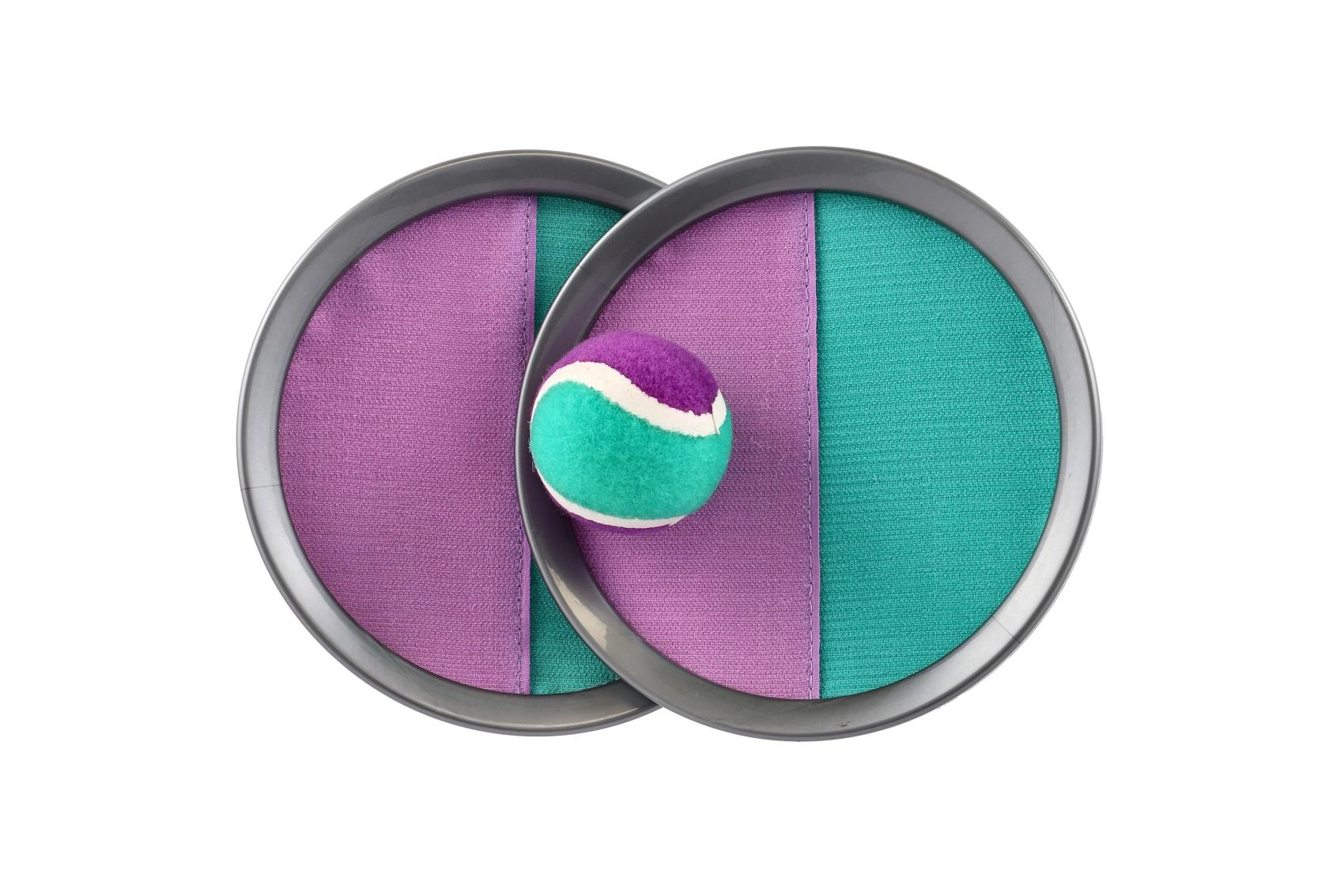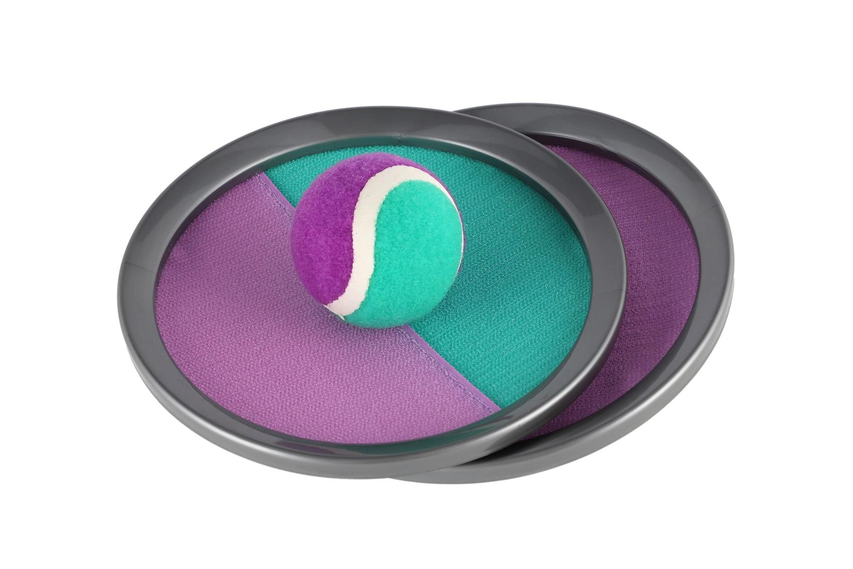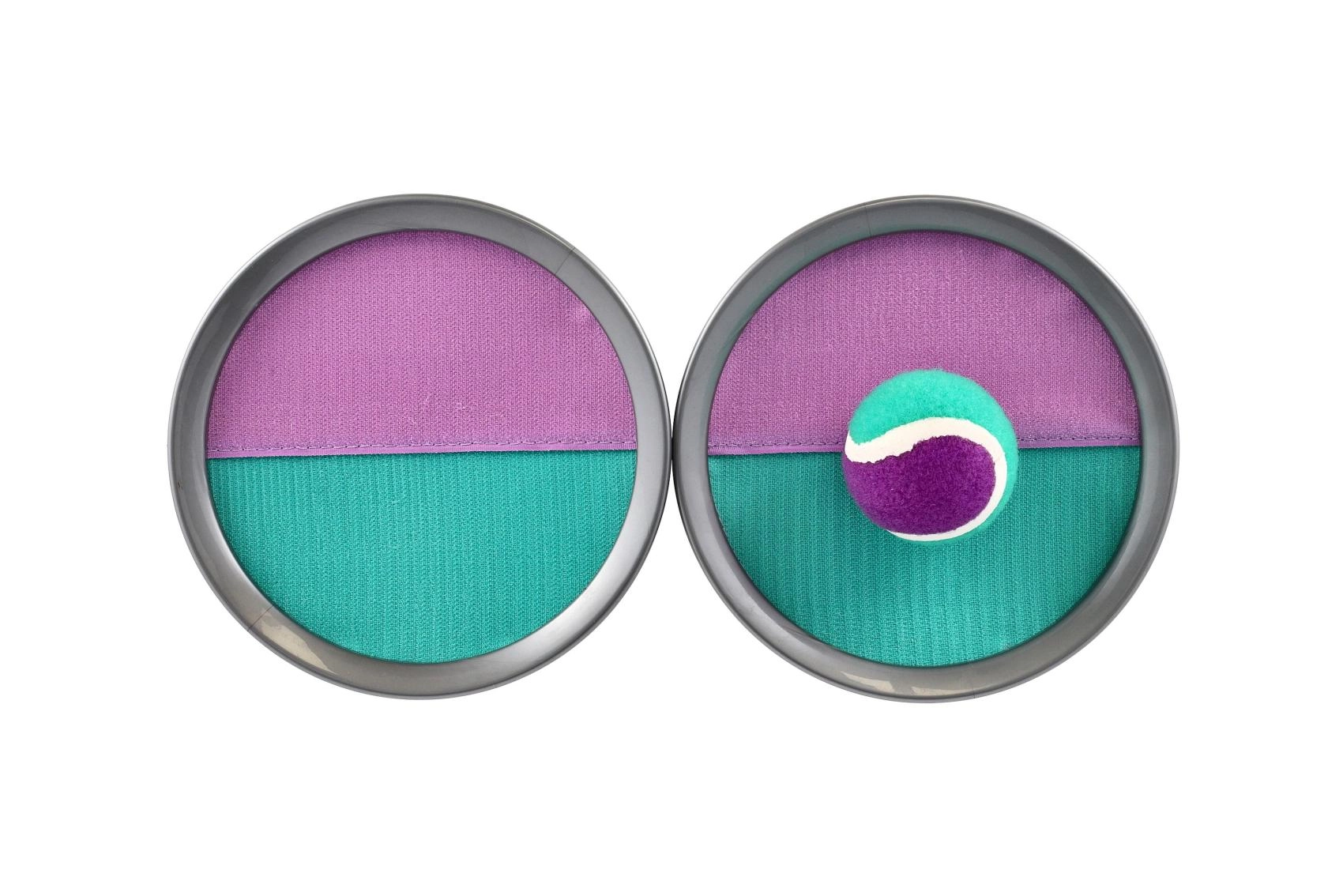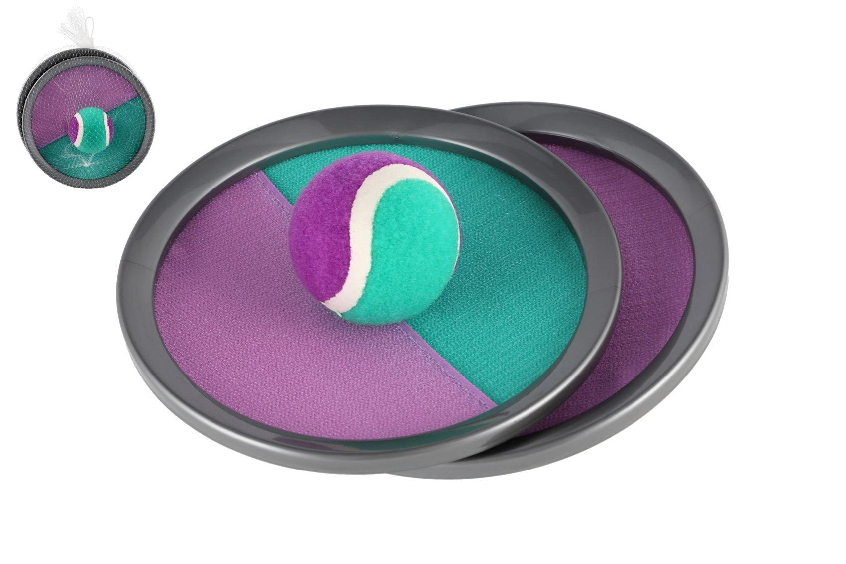 Catch ball spel met klittenband 19 cm – groen‑paars, in netje