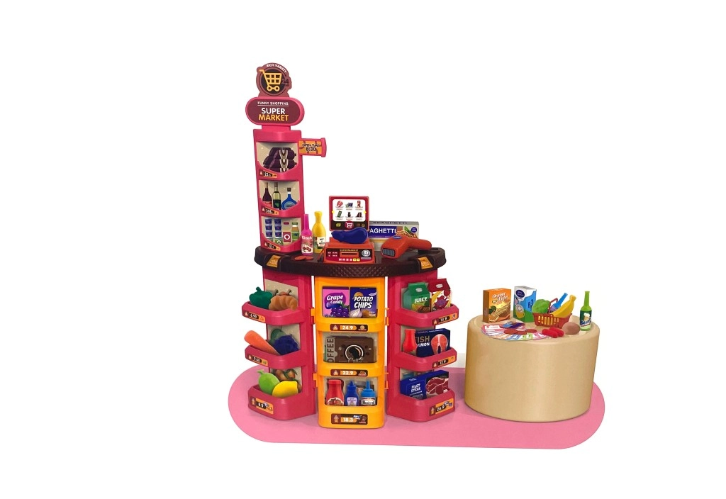 Kinderkassa’s bieden een barcodescanner en handscanner, pinautomaat, bankbiljetten en munten, rekenmachine, microfoon en licht- en geluidseffecten – ideaal voor spelenderwijs leren en het oefenen van het bedienen van de kassa. Daarmee leren kinderen rekenen, verbeteren ze de communicatie met de klant en ontwikkelen ze hun financiële geletterdheid. Etenswaren voor de kinderwinkel (fruit, groenten, brood, doosjes of blikjes) van hout, plastic en textiel, vaak met klittenband of magneet, stimuleren de fantasie en de fijne motoriek.