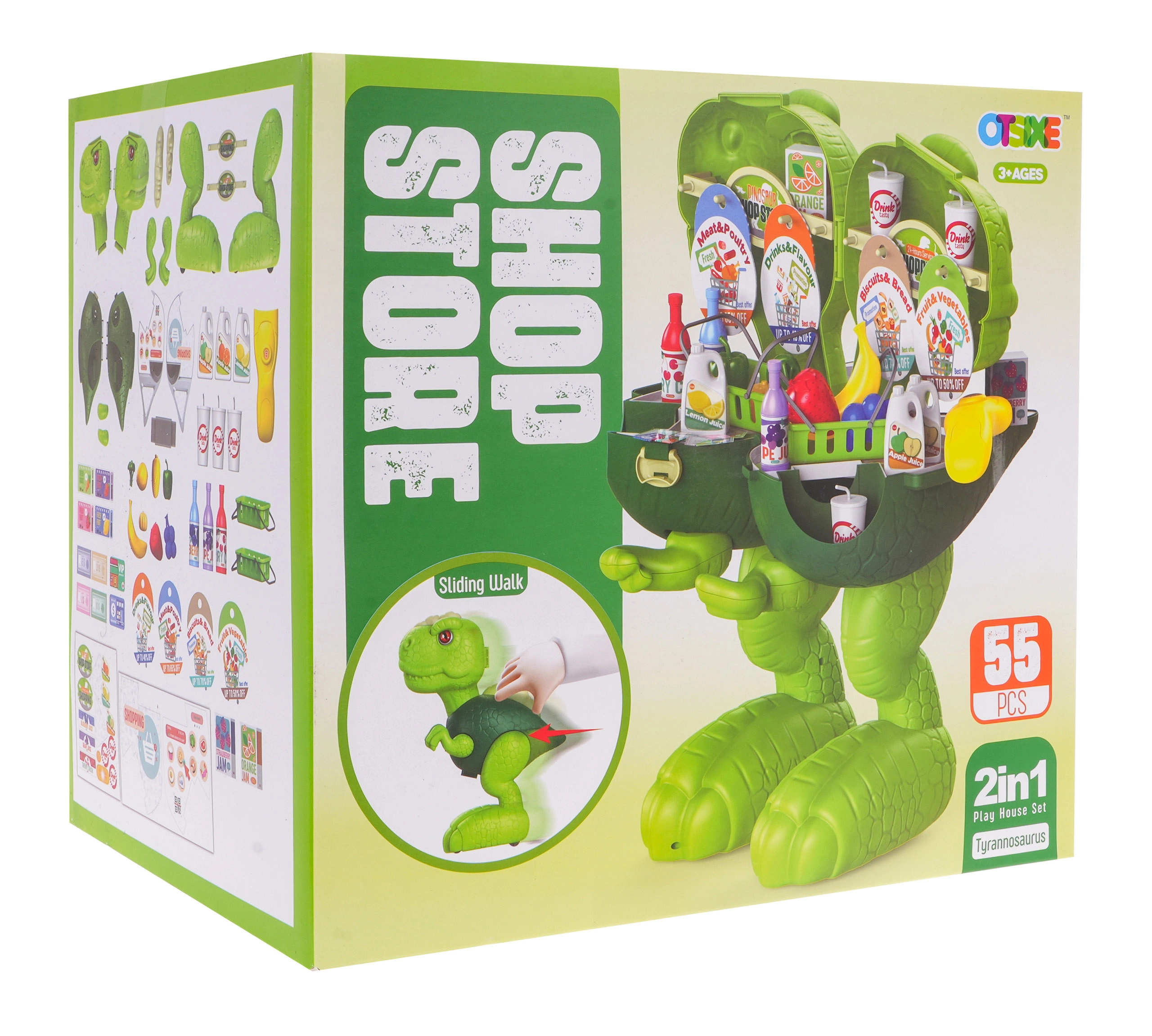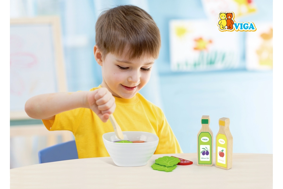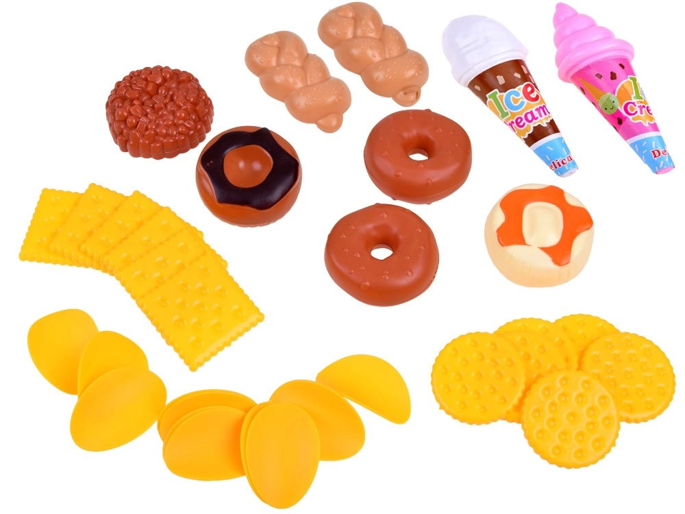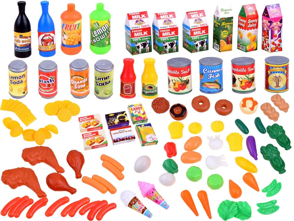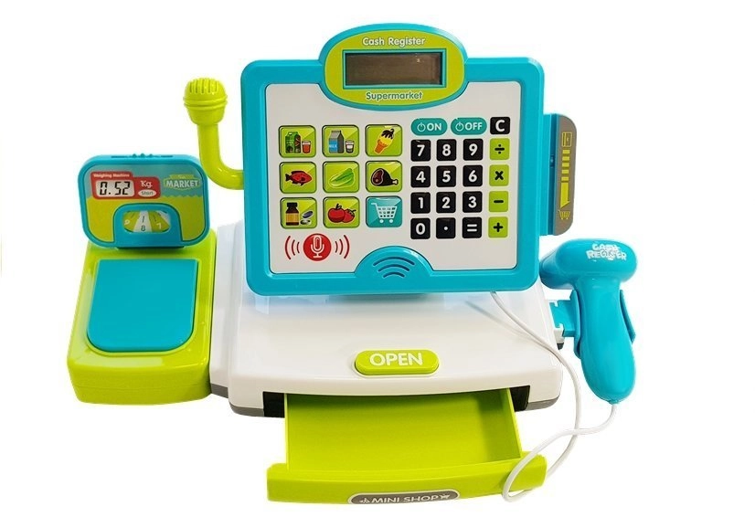 Kinderkassa’s bieden een barcodescanner en handscanner, pinautomaat, bankbiljetten en munten, rekenmachine, microfoon en licht- en geluidseffecten – ideaal voor spelenderwijs leren en het oefenen van het bedienen van de kassa. Daarmee leren kinderen rekenen, verbeteren ze de communicatie met de klant en ontwikkelen ze hun financiële geletterdheid. Etenswaren voor de kinderwinkel (fruit, groenten, brood, doosjes of blikjes) van hout, plastic en textiel, vaak met klittenband of magneet, stimuleren de fantasie en de fijne motoriek.