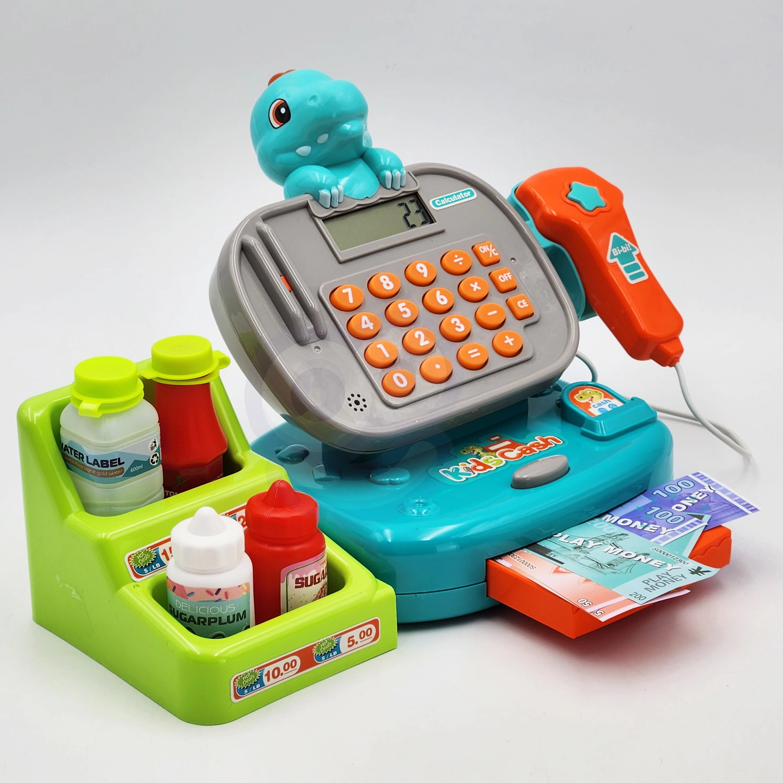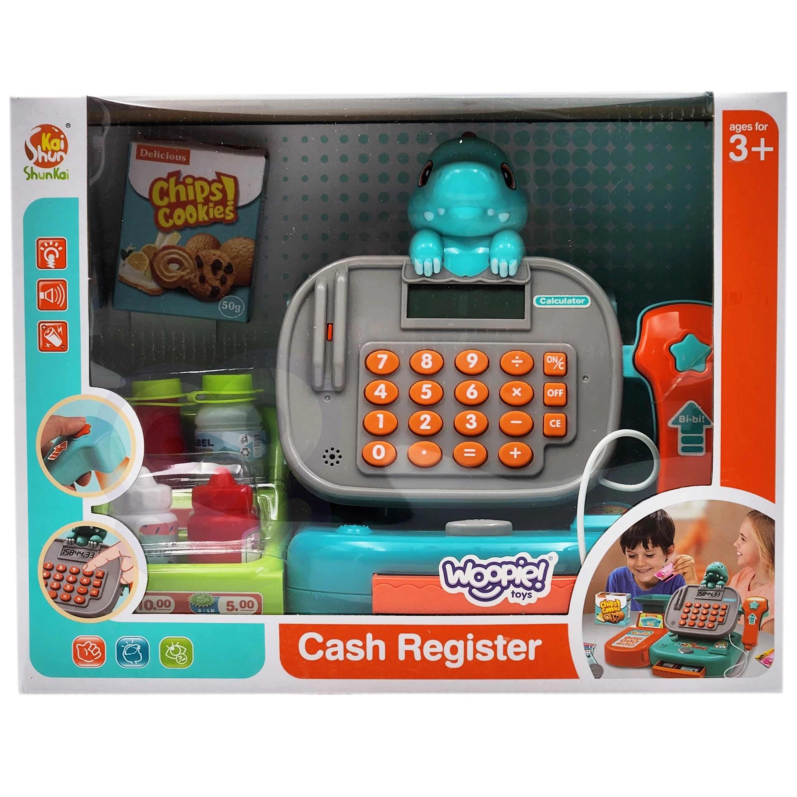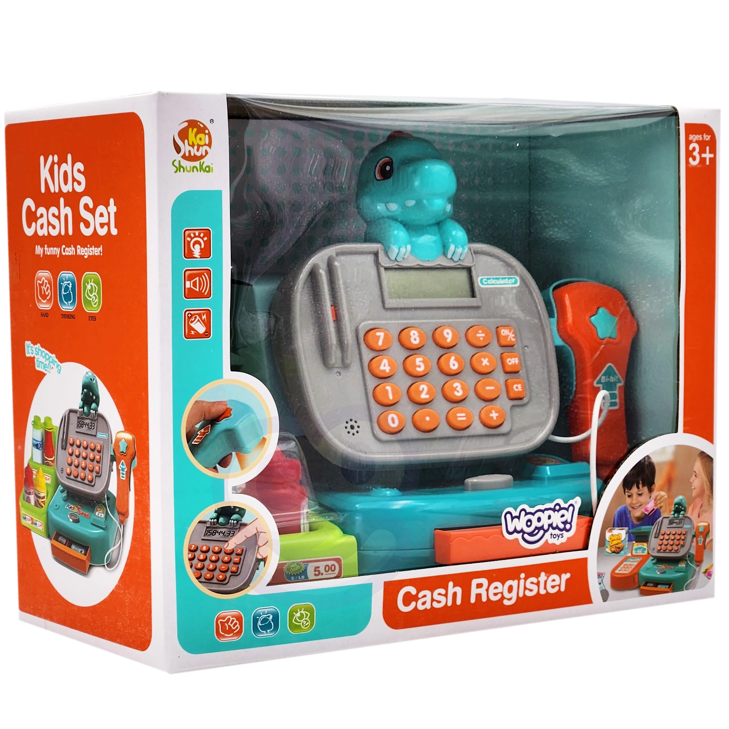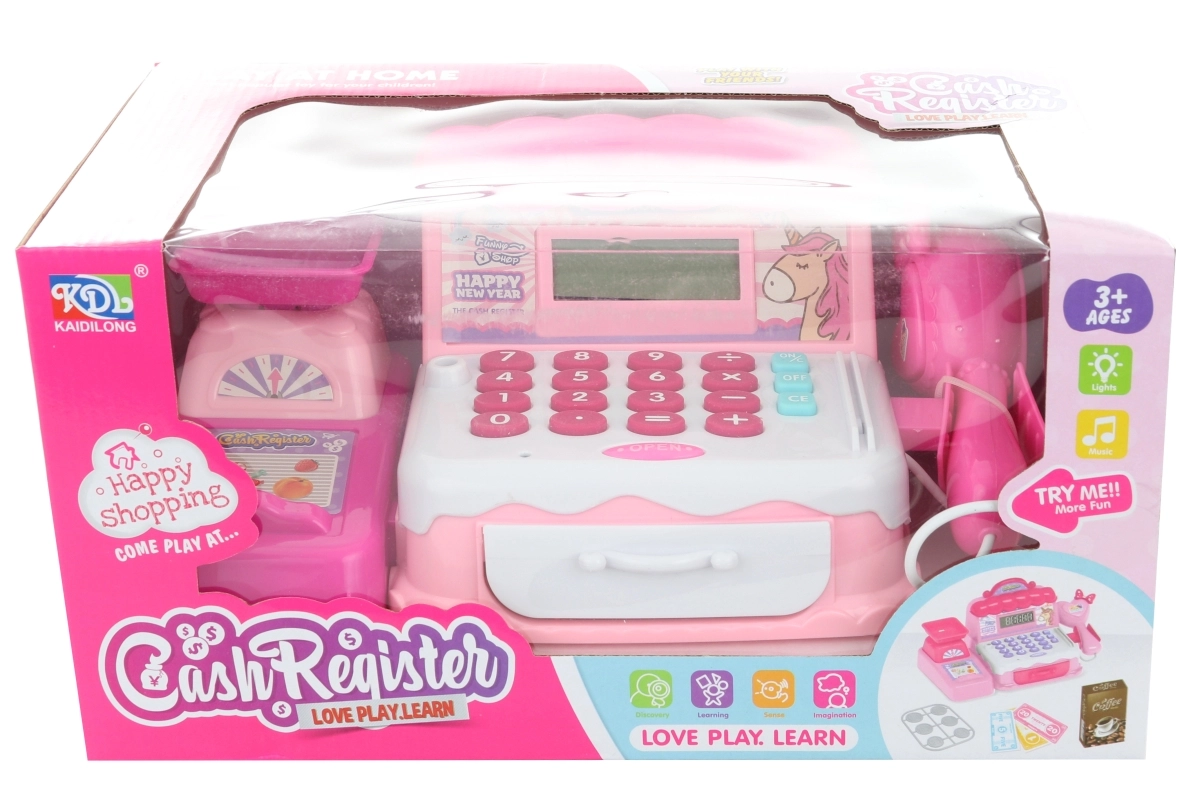 Kinderkassa’s bieden een barcodescanner en handscanner, pinautomaat, bankbiljetten en munten, rekenmachine, microfoon en licht- en geluidseffecten – ideaal voor spelenderwijs leren en het oefenen van het bedienen van de kassa. Daarmee leren kinderen rekenen, verbeteren ze de communicatie met de klant en ontwikkelen ze hun financiële geletterdheid. Etenswaren voor de kinderwinkel (fruit, groenten, brood, doosjes of blikjes) van hout, plastic en textiel, vaak met klittenband of magneet, stimuleren de fantasie en de fijne motoriek.