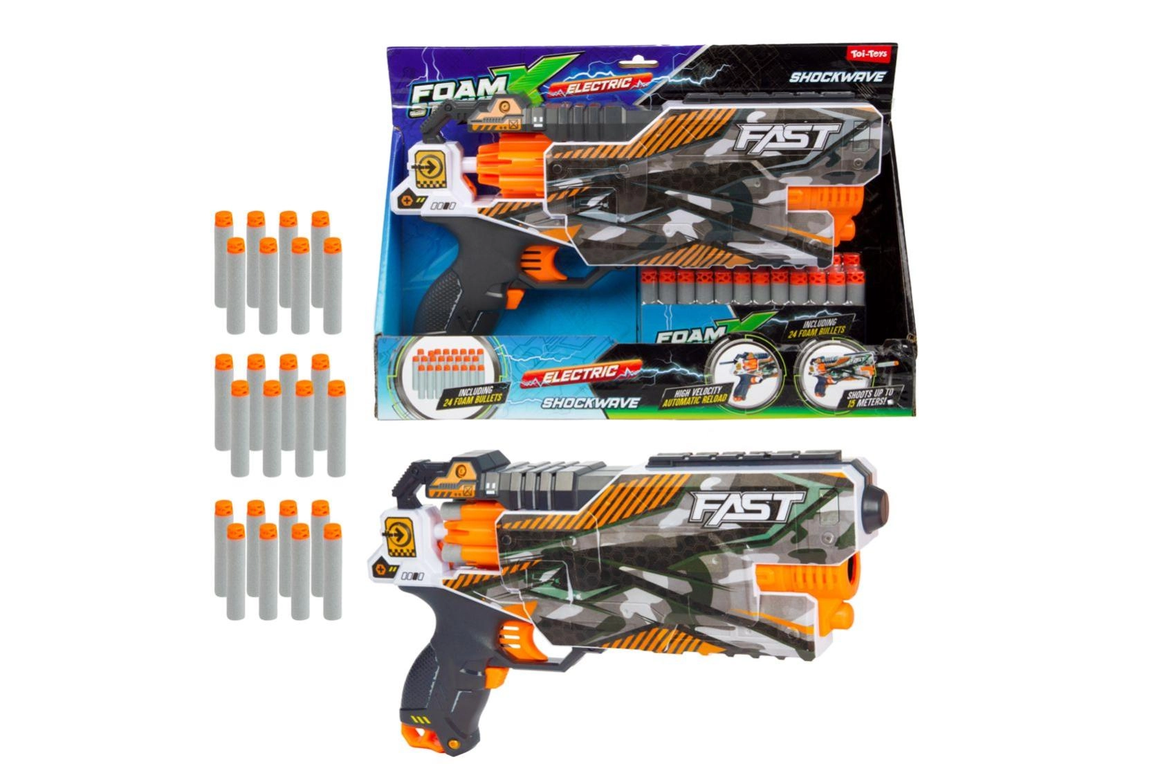 Focus op veiligheid en comfort: het lichte ontwerp, de ergonomische greep en afgeronde randen zorgen voor eenvoudige bediening en een prettige grip. Kwalitatieve en duurzame materialen doorstaan zelfs intensief spelen. Speelgoedwapens en -pistolen bieden verschillende formaten, capaciteiten en licht- of geluidseffecten, zodat het spel realistisch blijft, maar toch veilig. Populair zijn pistolen voor foam pijltjes met snel herladen, waterpistolen voor kinderen en sets voor laser tag.