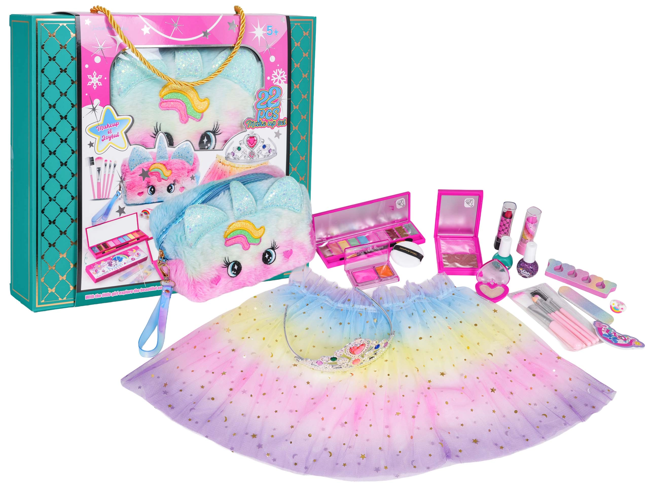 In het assortiment vind je houten cosmeticahulpmiddelen voor de allerkleinsten (paletten, lippenstiften en poederdoosjes zonder echte kleuren) én kindercosmetica op waterbasis voor oudere kinderen – blush, gloss, oogschaduw en glitters voor het opmaken, evenals nagellak en accessoires voor kinder-manicure en -pedicure. Een cosmeticaset voor kinderen stimuleert creativiteit, fantasie, fijne motoriek en zelfexpressie, en leert bovendien spelenderwijs over huidverzorging en hygiëne.