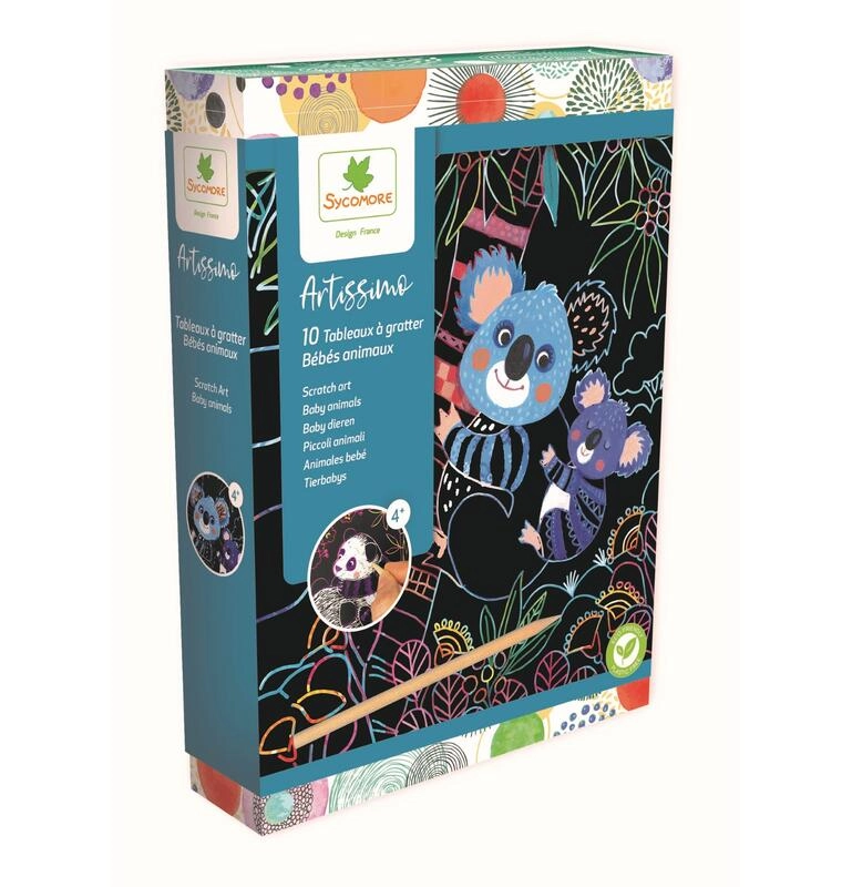 Onder de zwarte laag schuilt een kleurrijke wereld – met een paar streken van de kraspen ontstaan magische krasplaatjes. Scratch art (kras- of krabplaatjes) hoort bij populaire creatieve speelgoed en knutselsets met regenboog-, glitter- en metallic-effecten en zorgt voor snelle resultaten. De sets bevatten meestal een houten kraspen, sjablonen en voorbeelden; op zwarte kaarten in A5- of A4-formaat maak je eenvoudig motieven van dieren, dinosaurussen, eenhoorns, de ruimte of mandala’s.