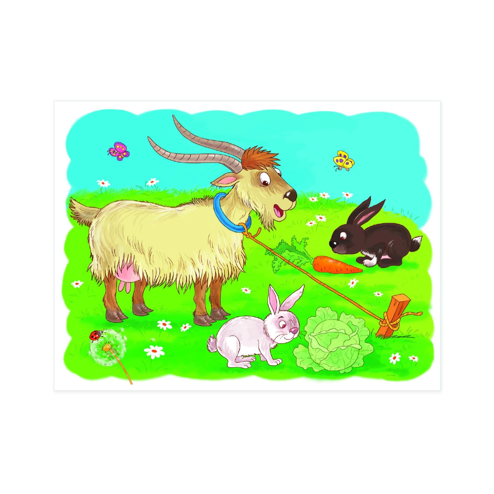 Viga houten inlegpuzzel dieren in de weide met knopjes