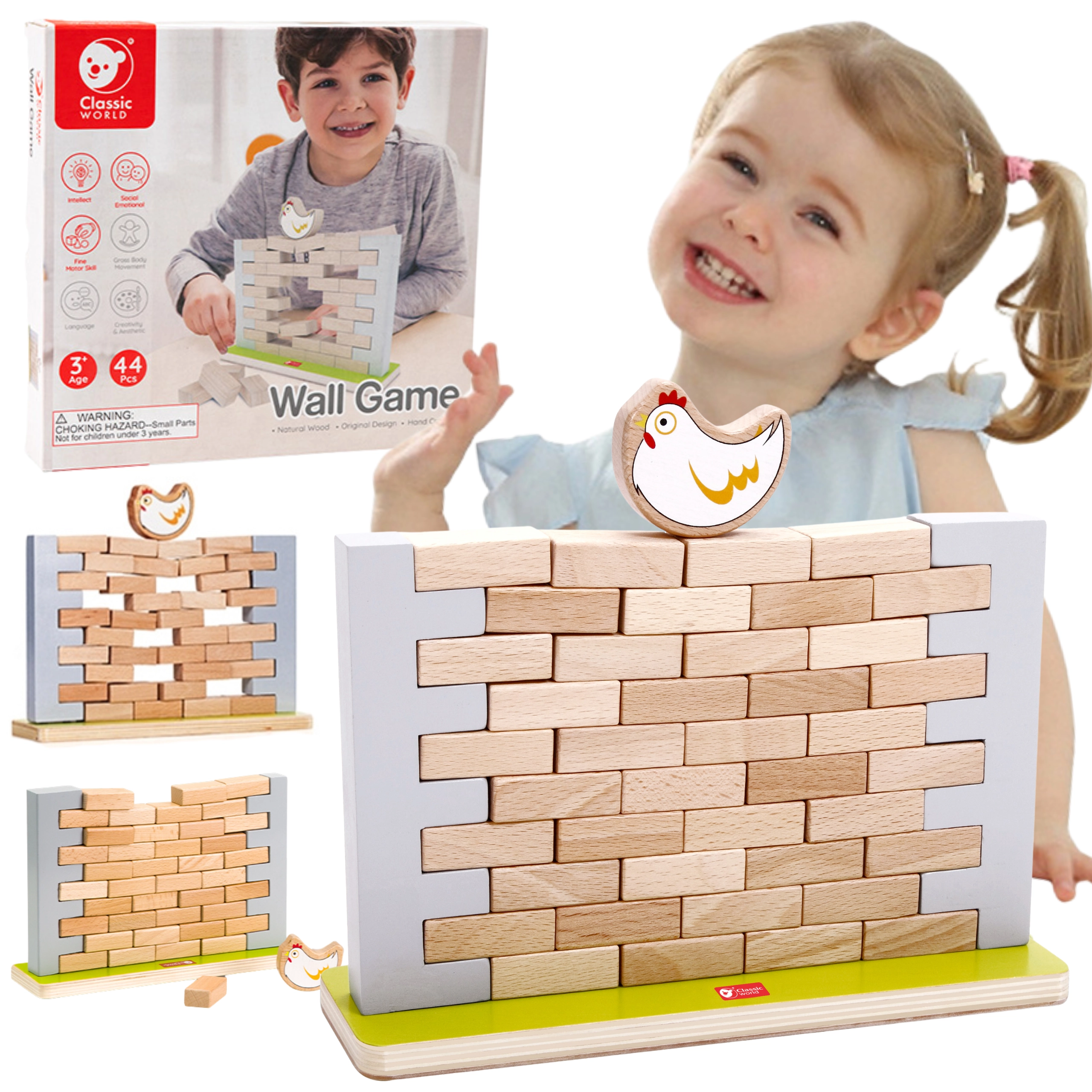 Houten balansspel gevallen kip CLASSIC WORLD, 44 stuks