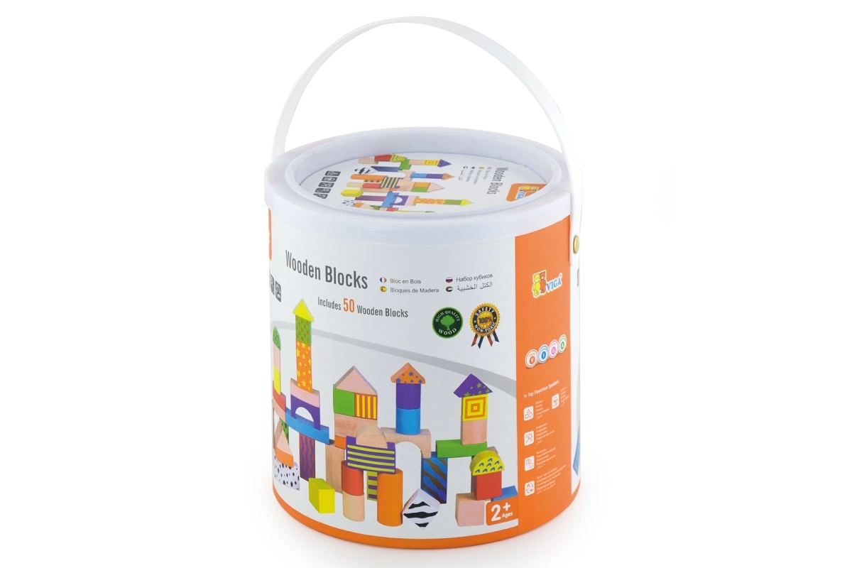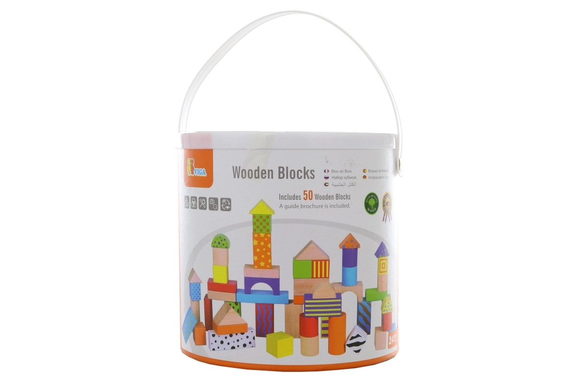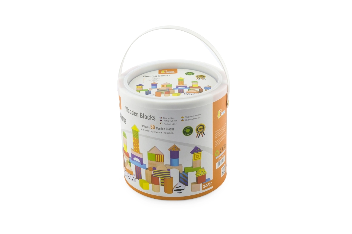 Houten bouwblokken in een emmer – 50 stuks