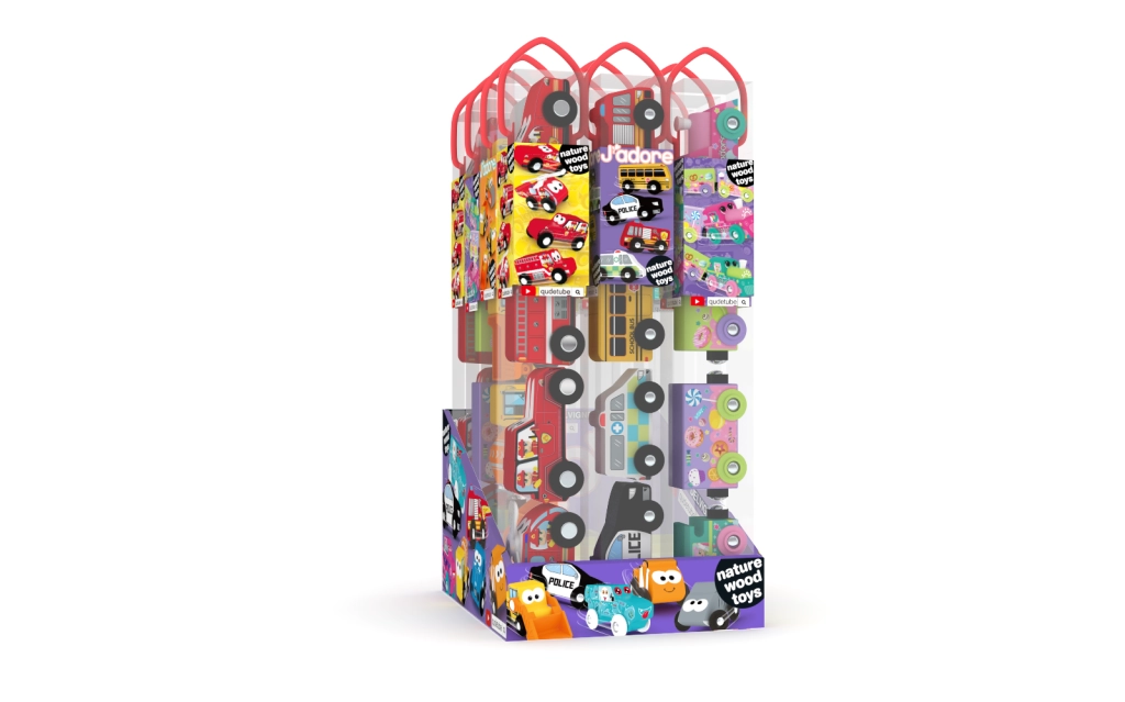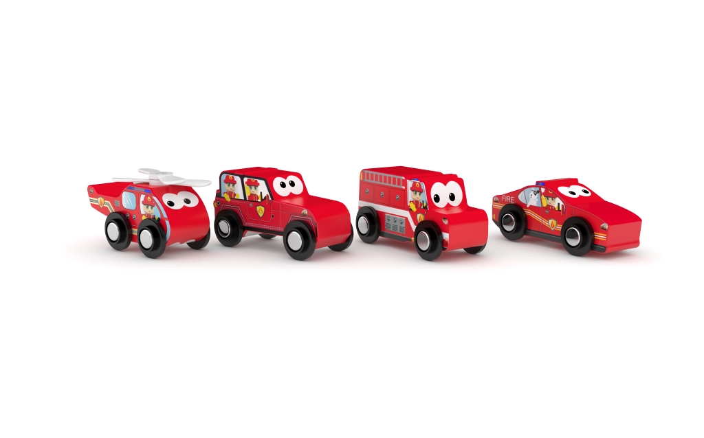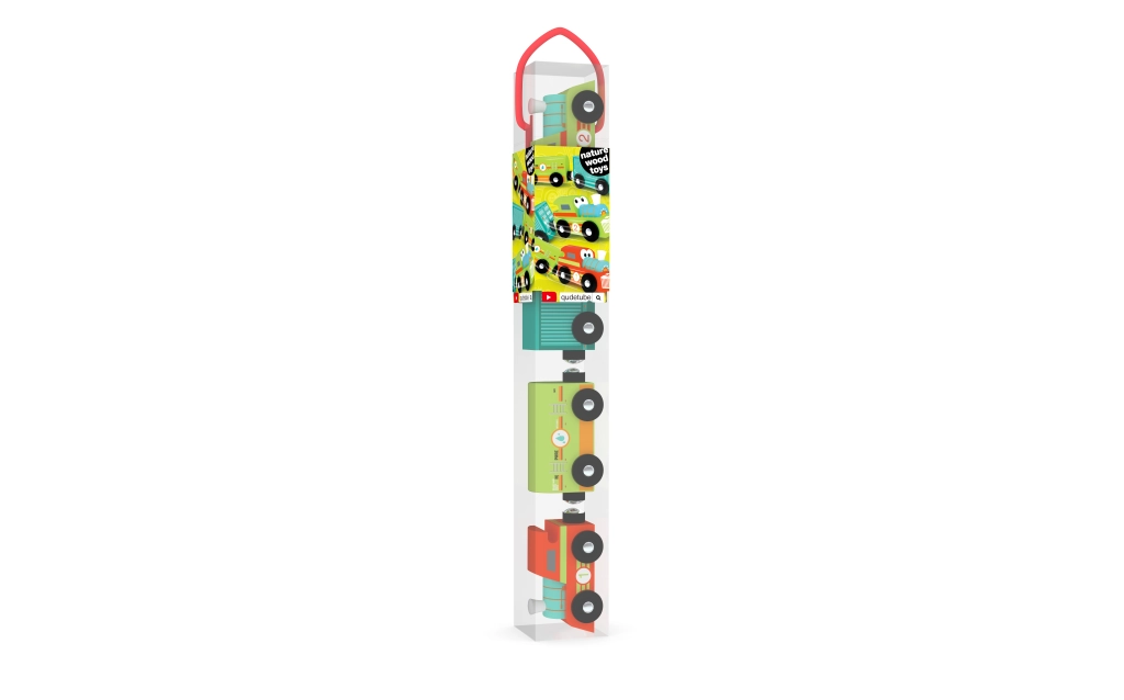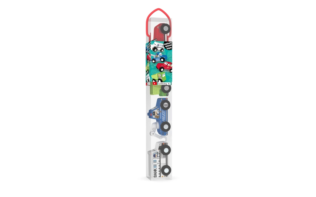 Set houten autootjes in een koker – 4 voertuigen