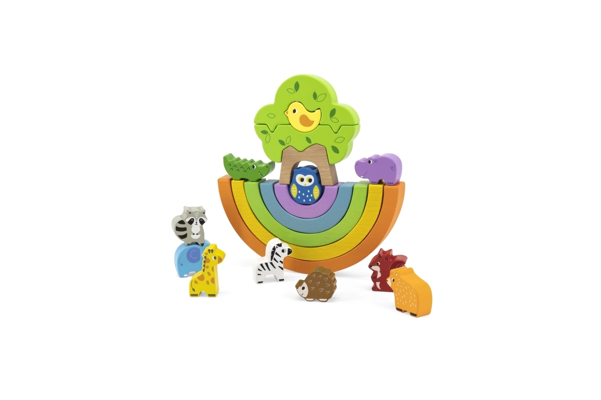 SMALL FOOT pastelkleurige stapeltoren – houten set konijntje en beer