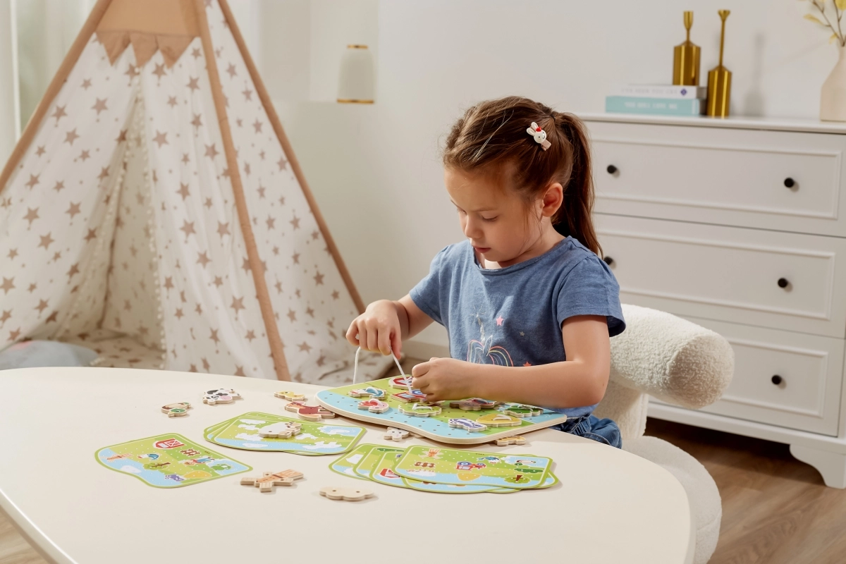 Houten rijgspel Boerderij – VIGA
