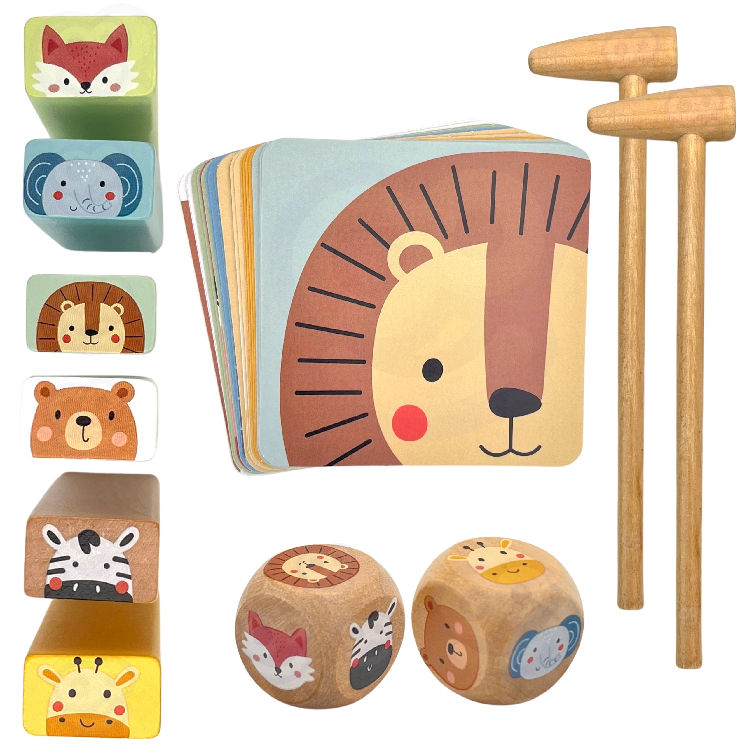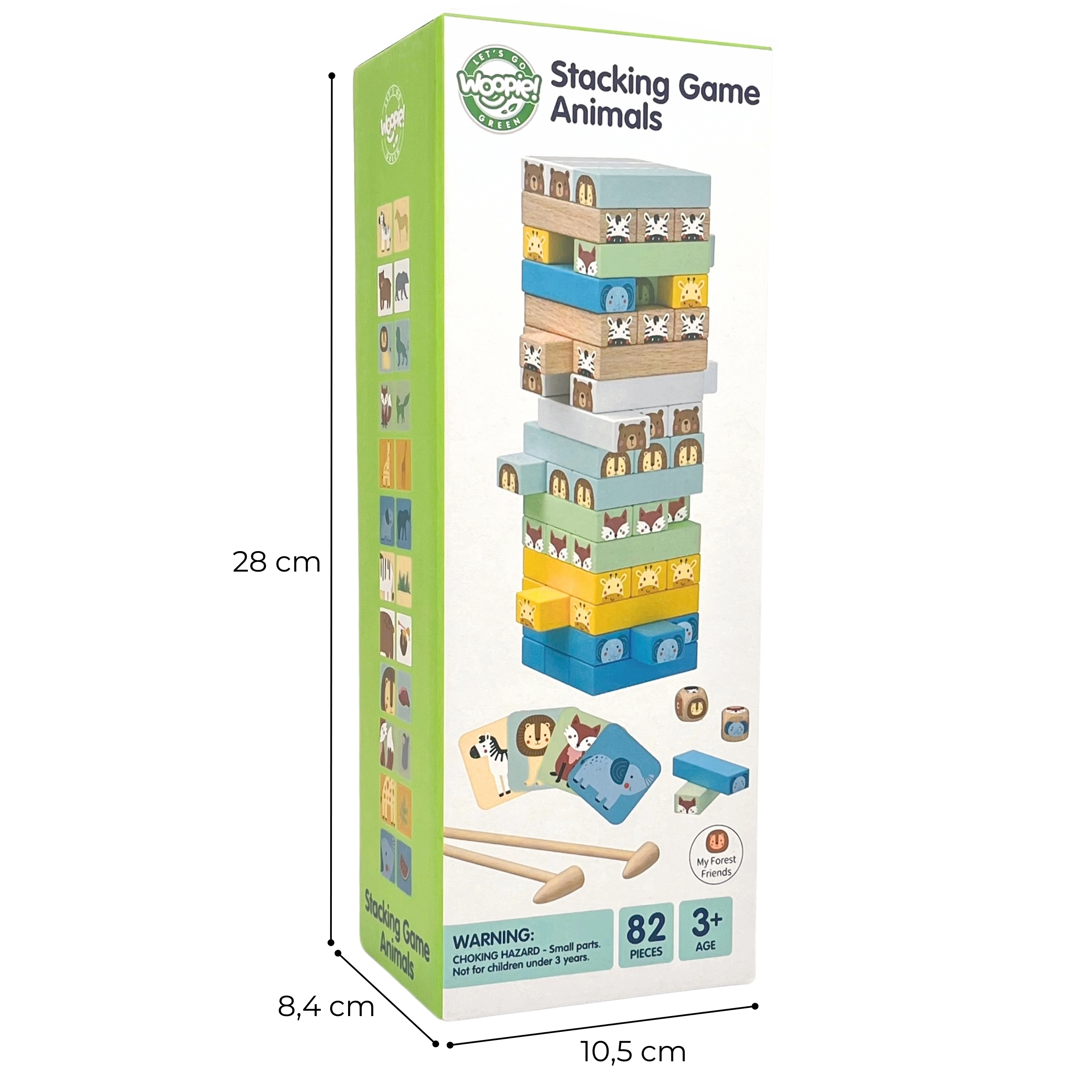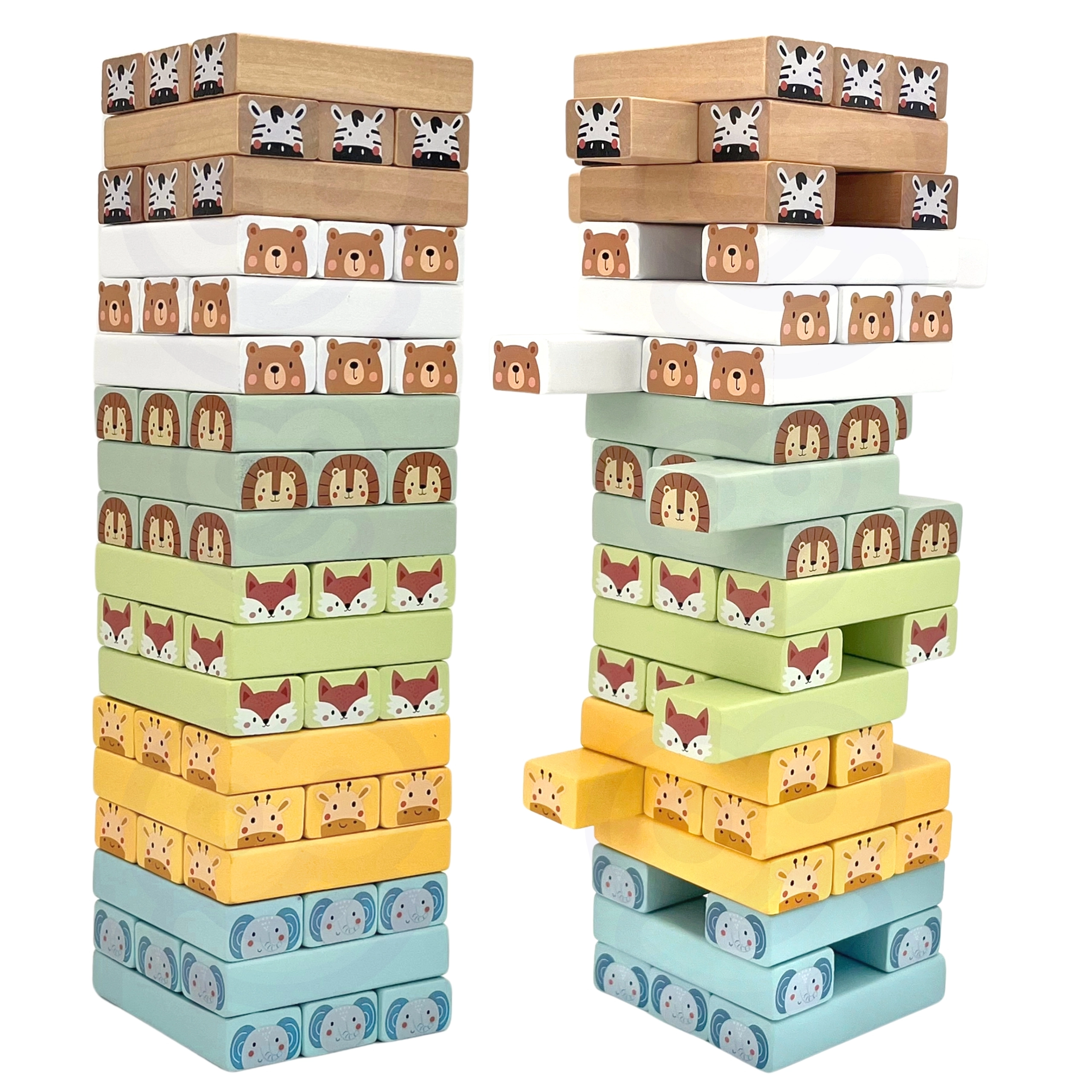WOOPRIE Houten spel Trillende Toren Diertjes 82 stuks