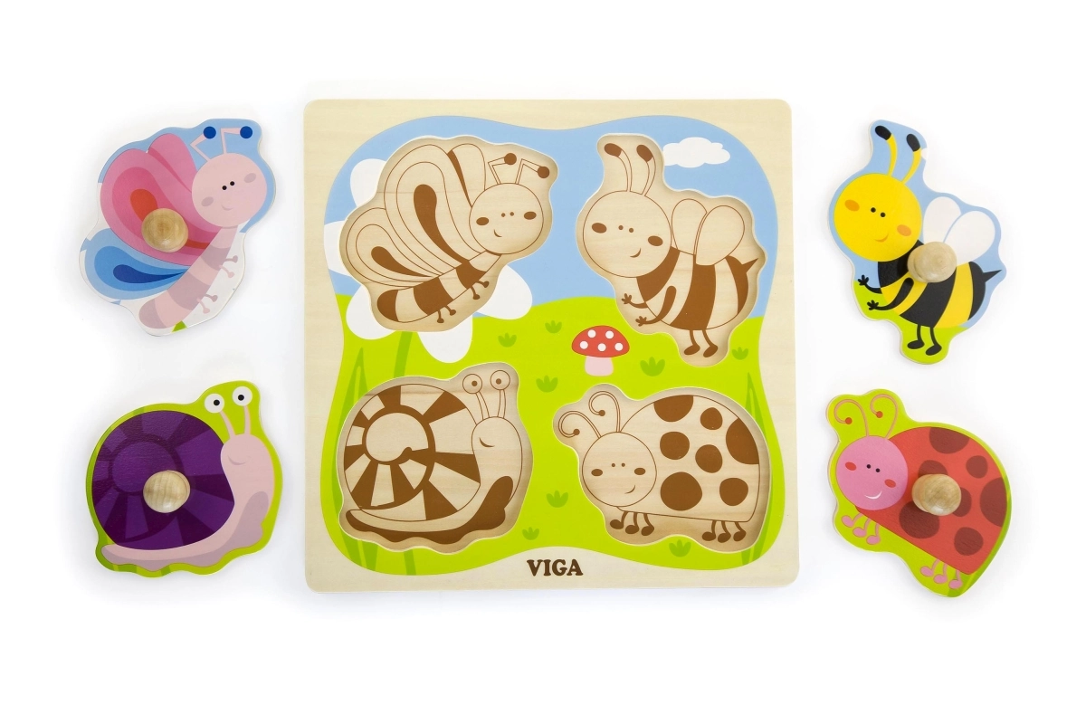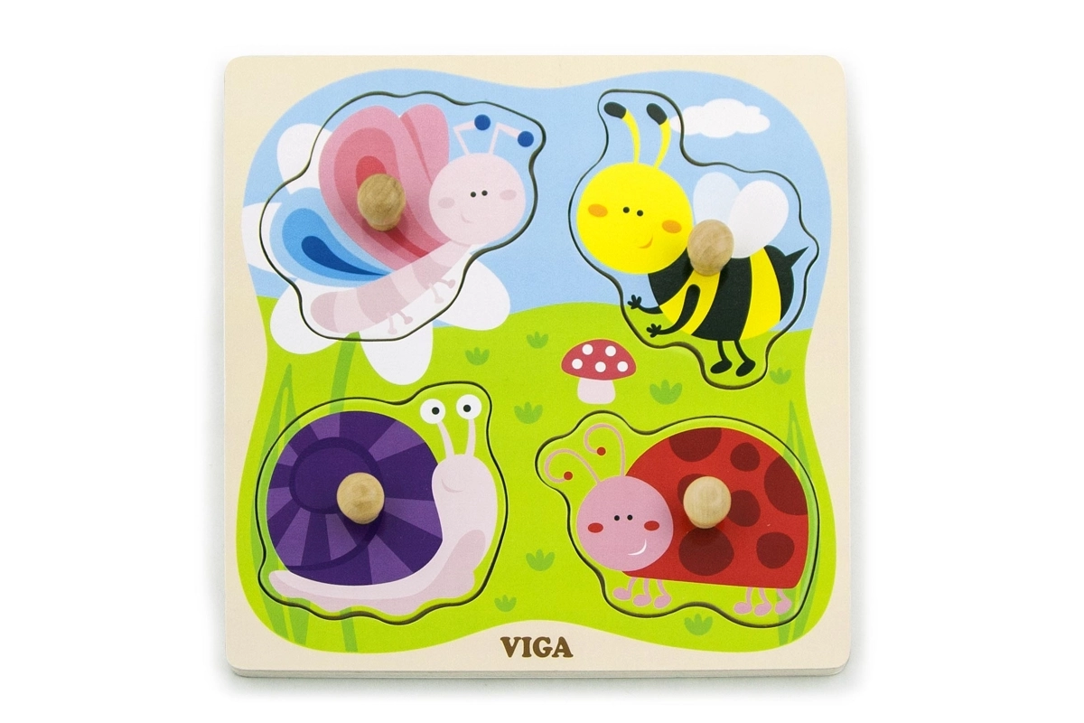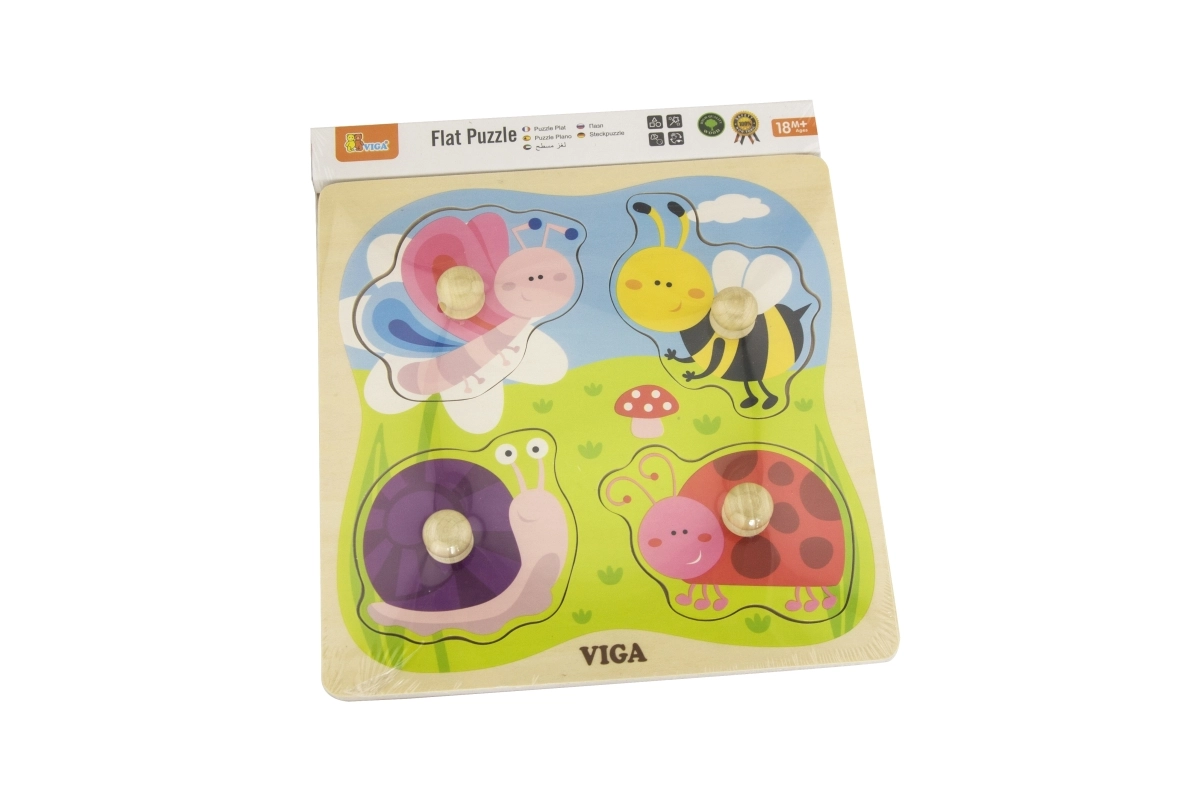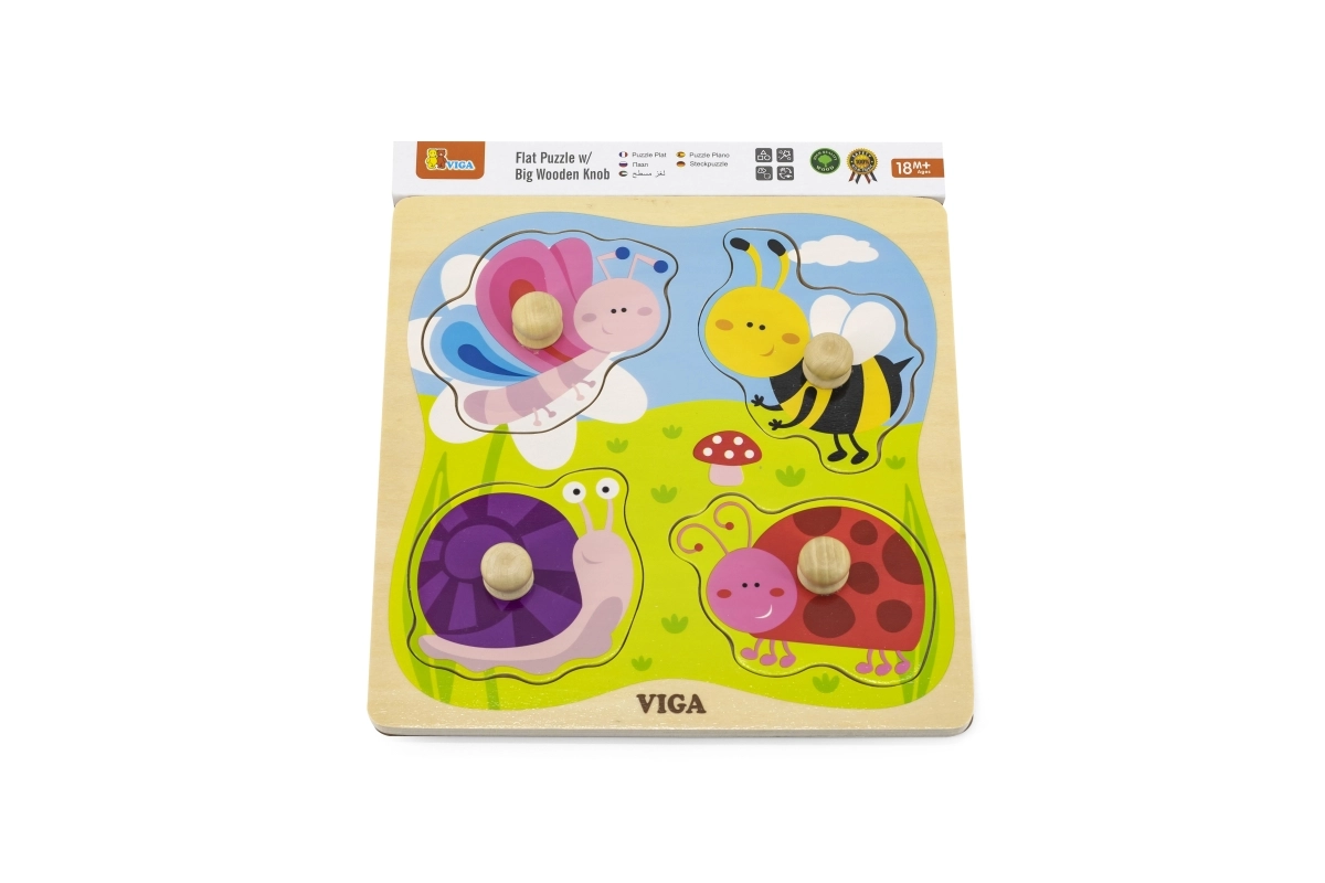 Viga houten inlegpuzzel dieren in de weide met knopjes