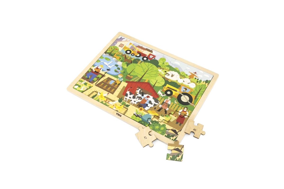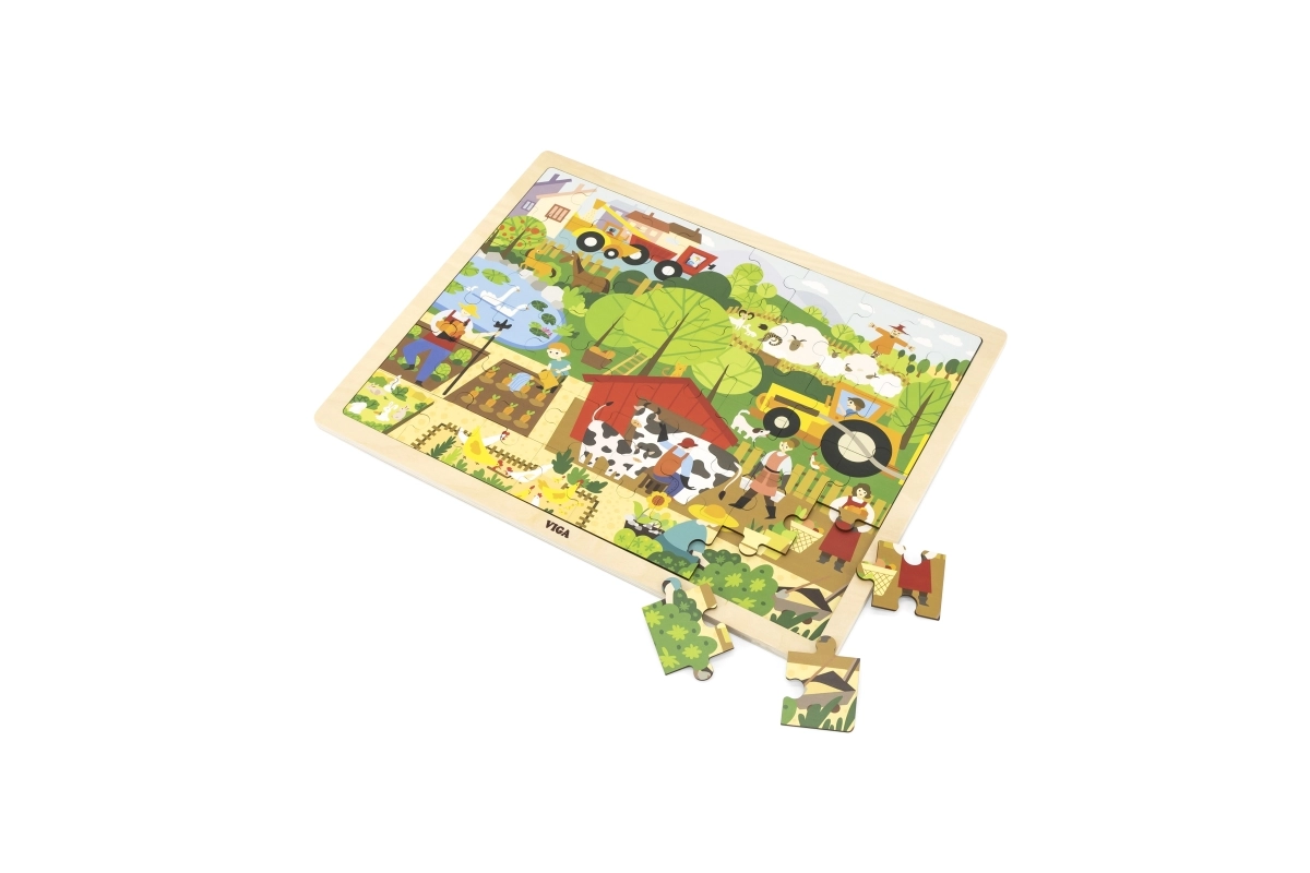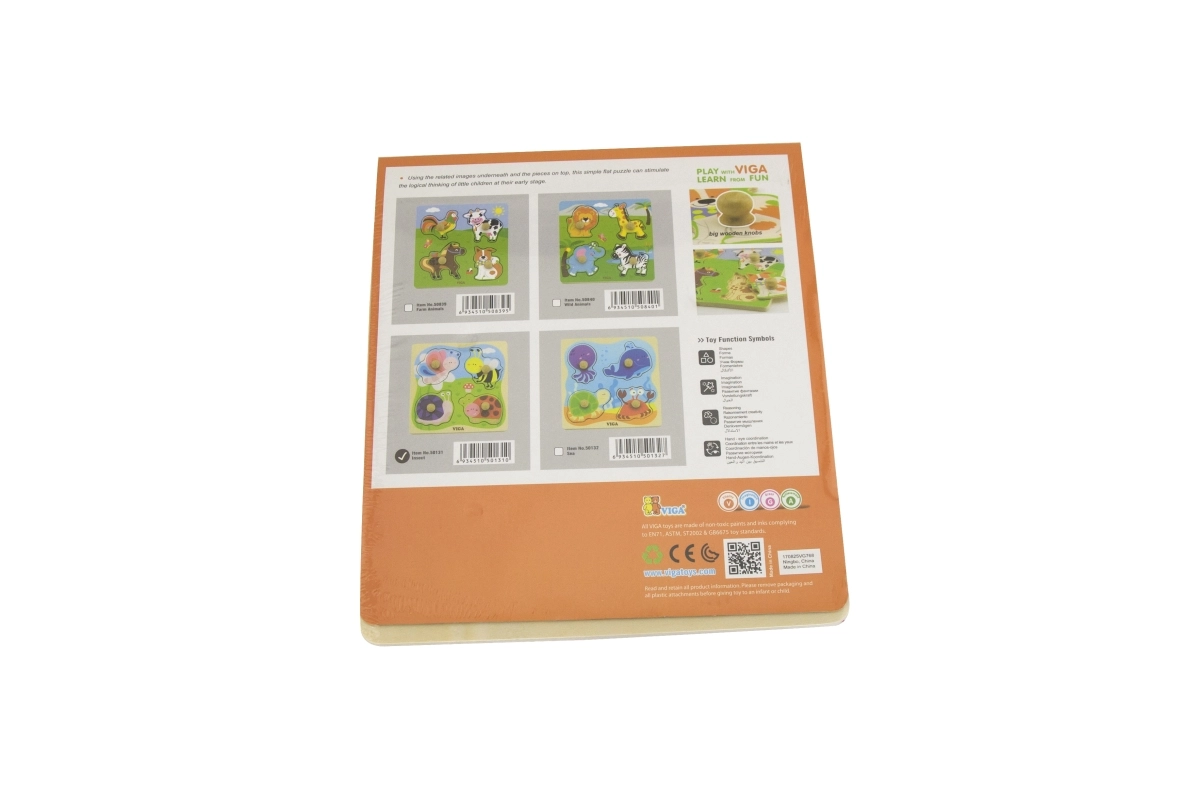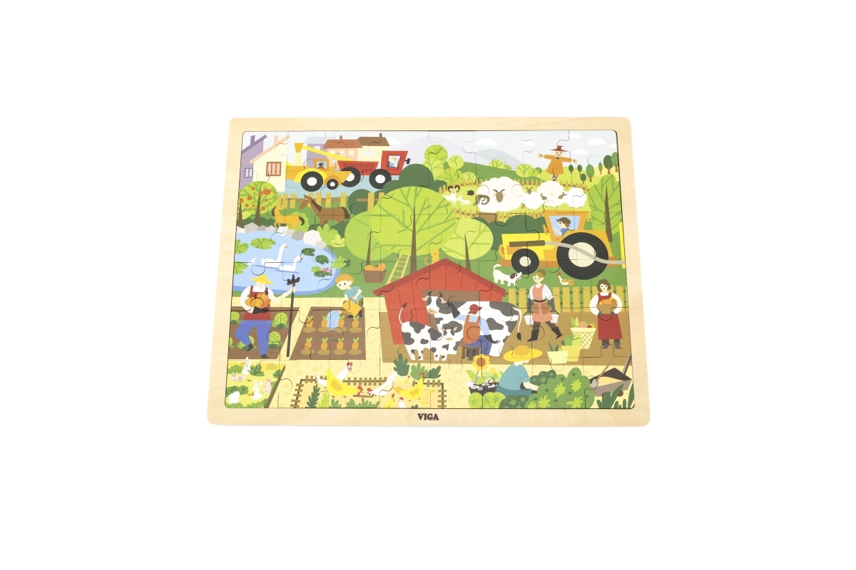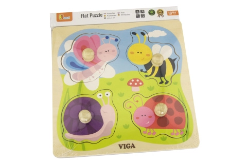 Viga houten inlegpuzzel dieren in de weide met knopjes
