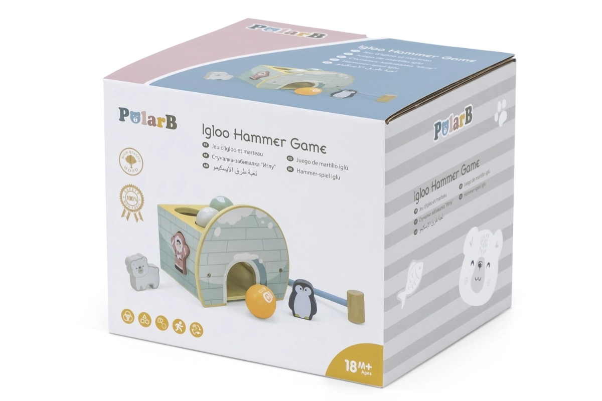 Viga PolarB houten iglo-spel met hamertje, figuurtjes en sorteerder
