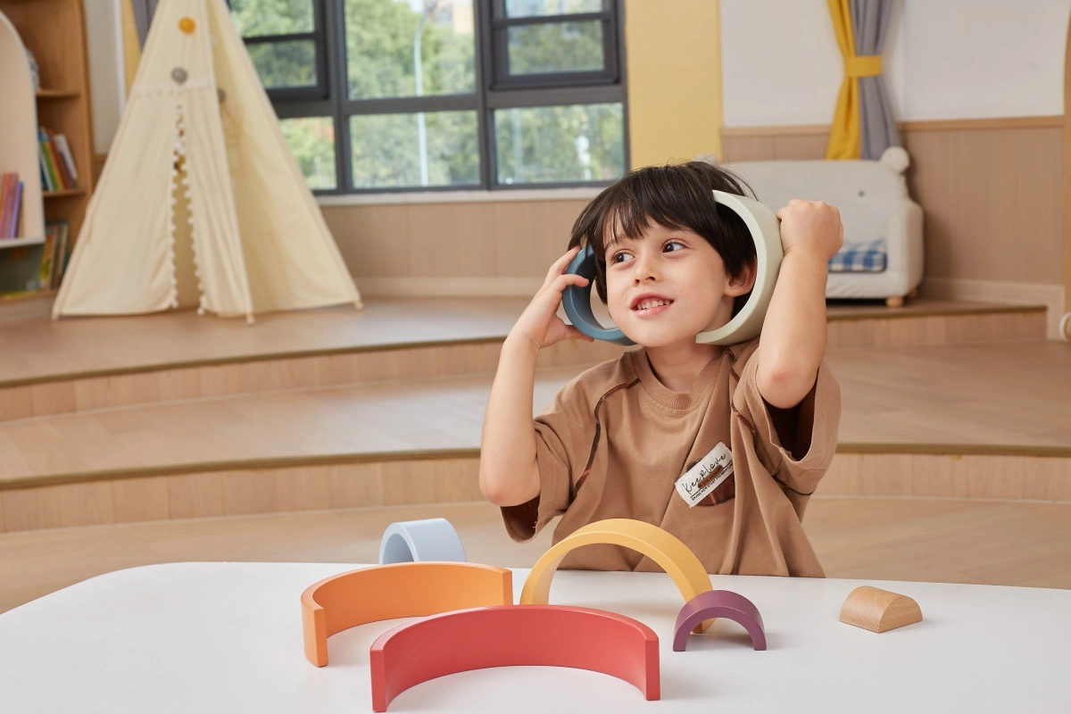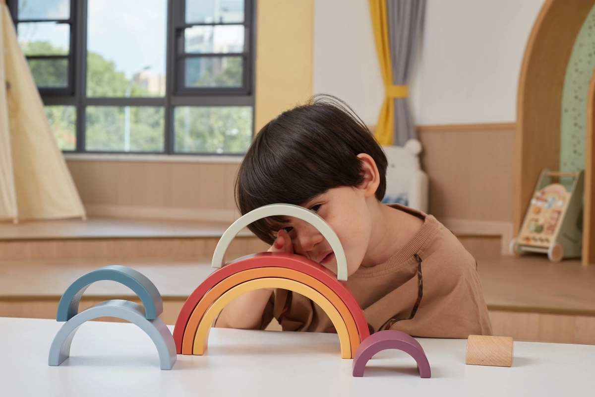 Houten regenboog PolarB – creatieve Montessori stapelset