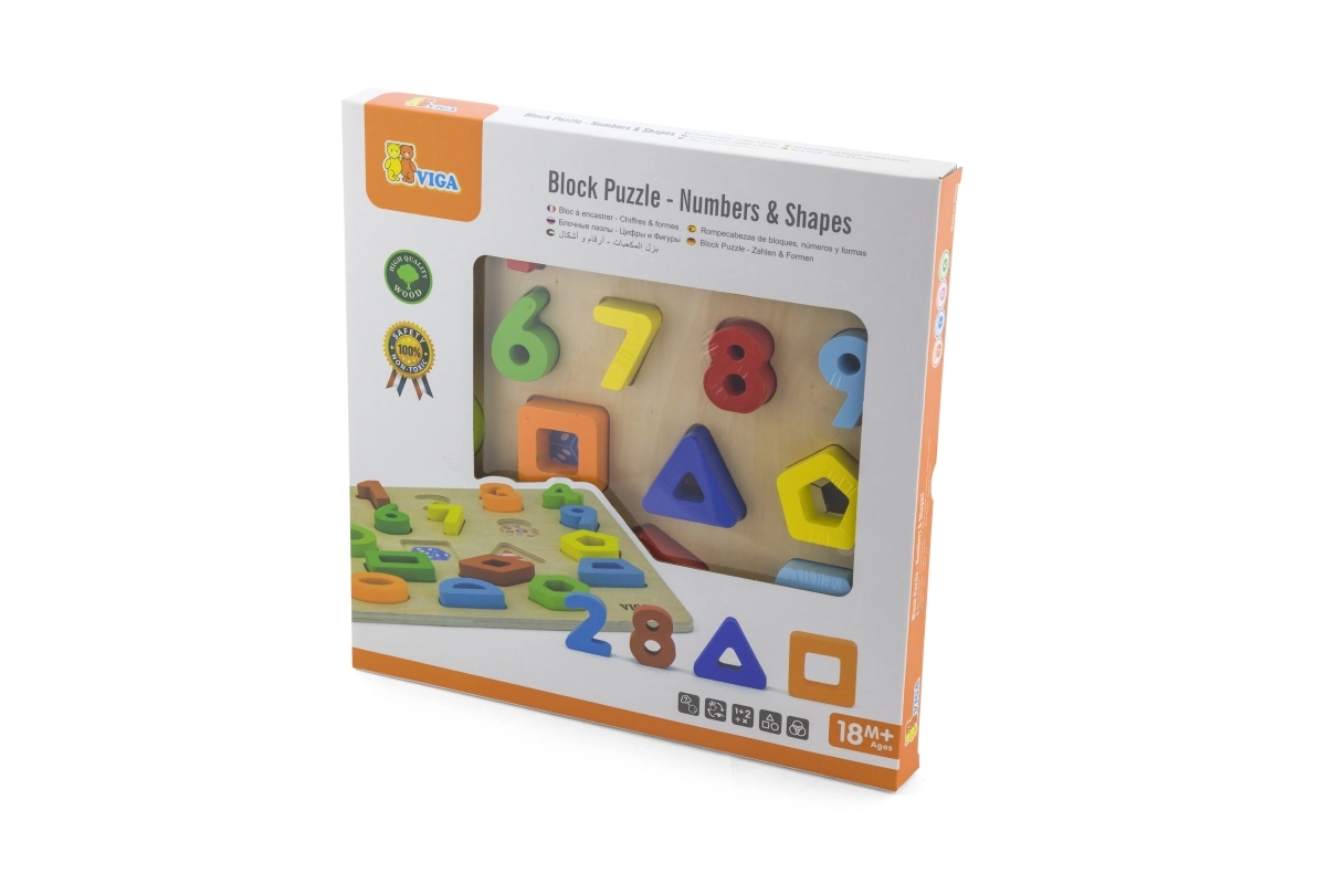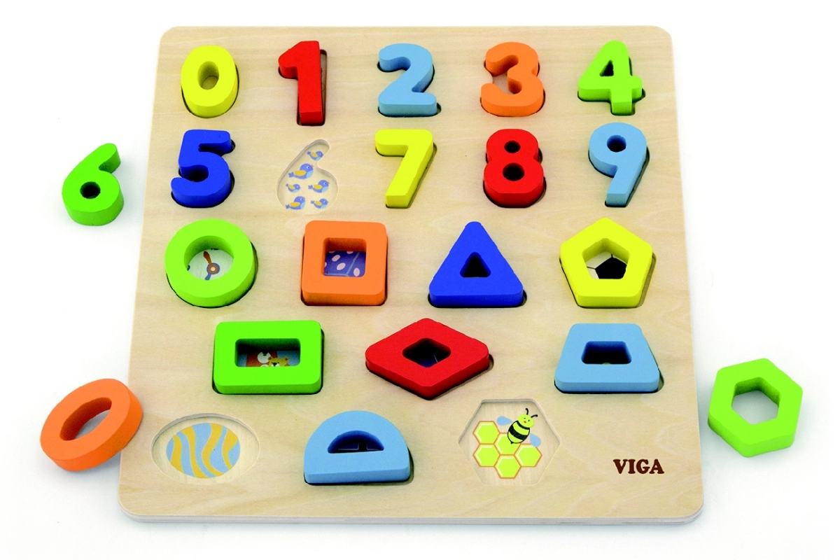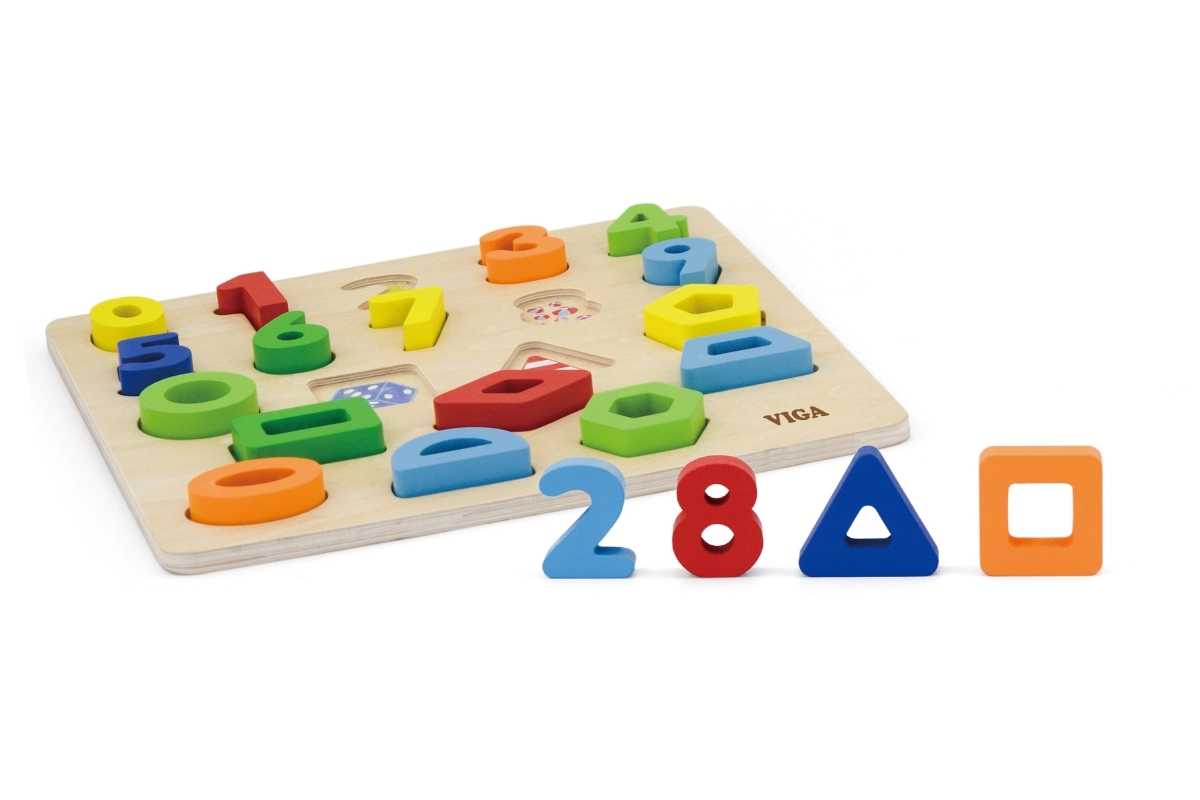 Houten inlegpuzzel VIGA – cijfers en vormen