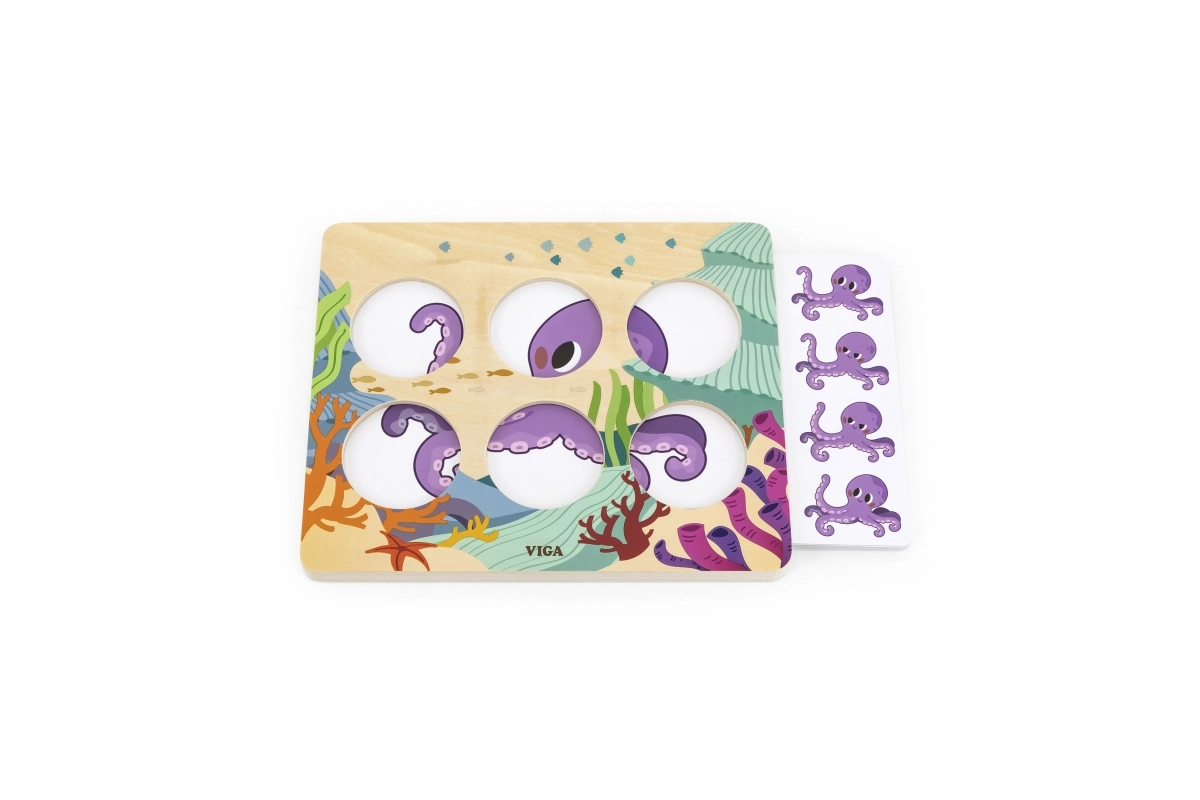 GOKI houten inlegpuzzel Wie woont waar?, 9 stukjes