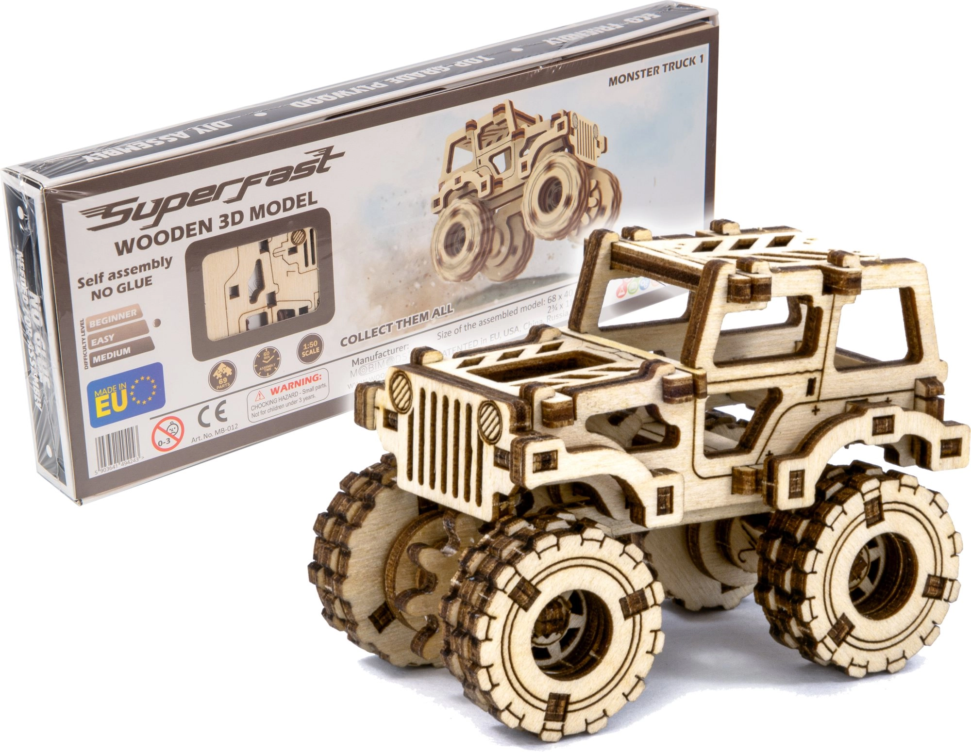 houten 3D-puzzel monstertruck Superfast WOODEN CITY