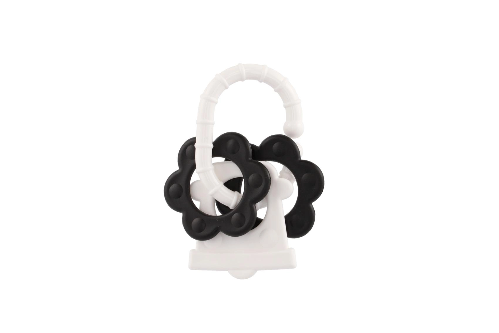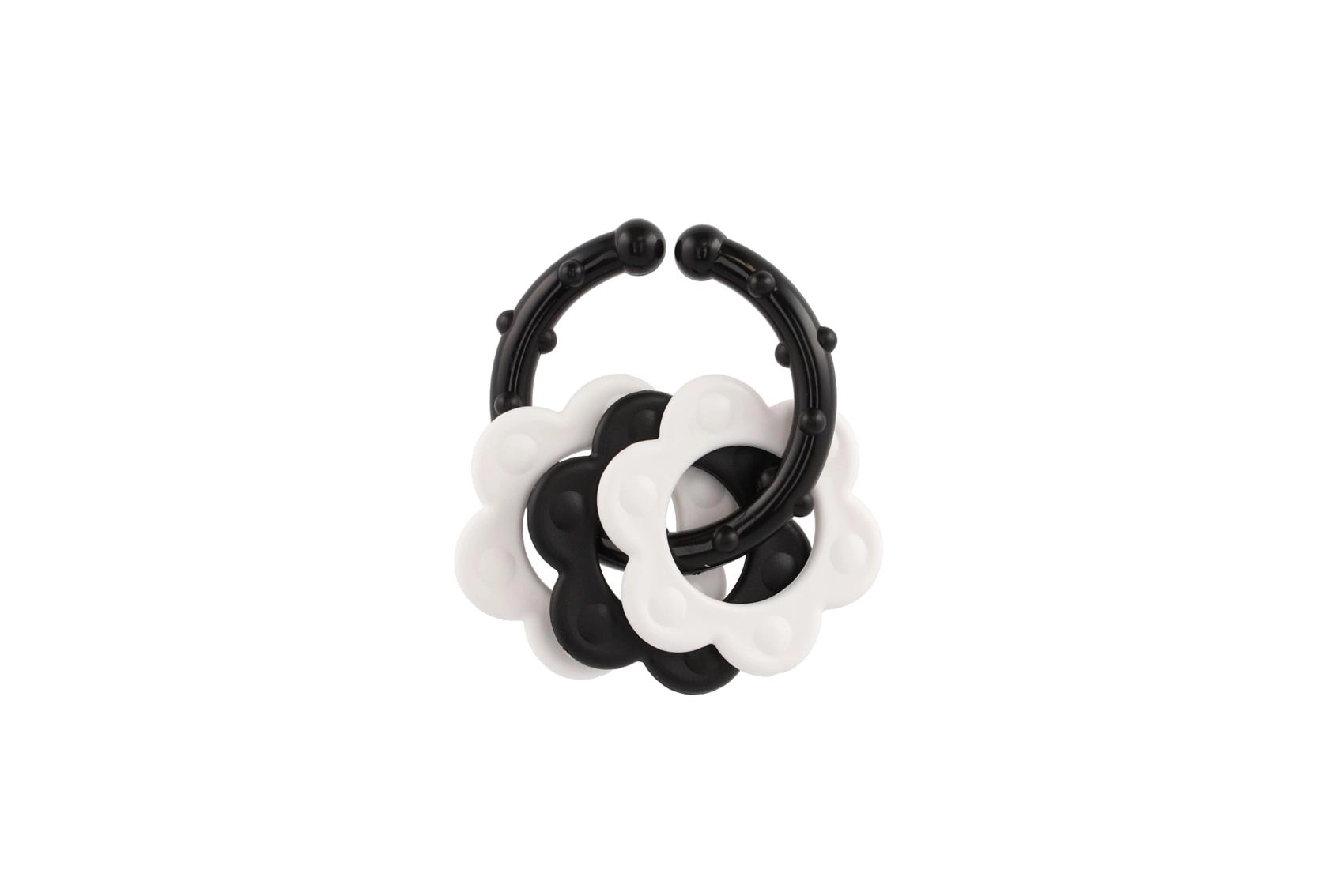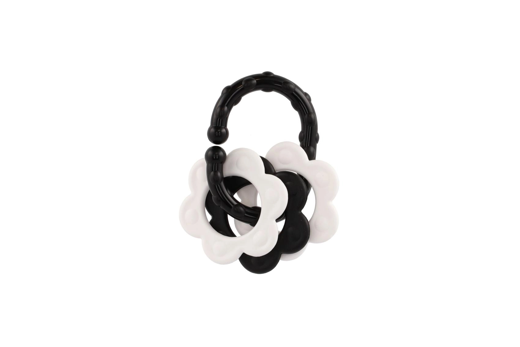 Bijtringen voor baby’s – zwart-witte vormen, rammelaar en handvat
