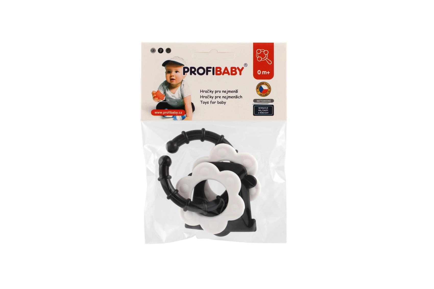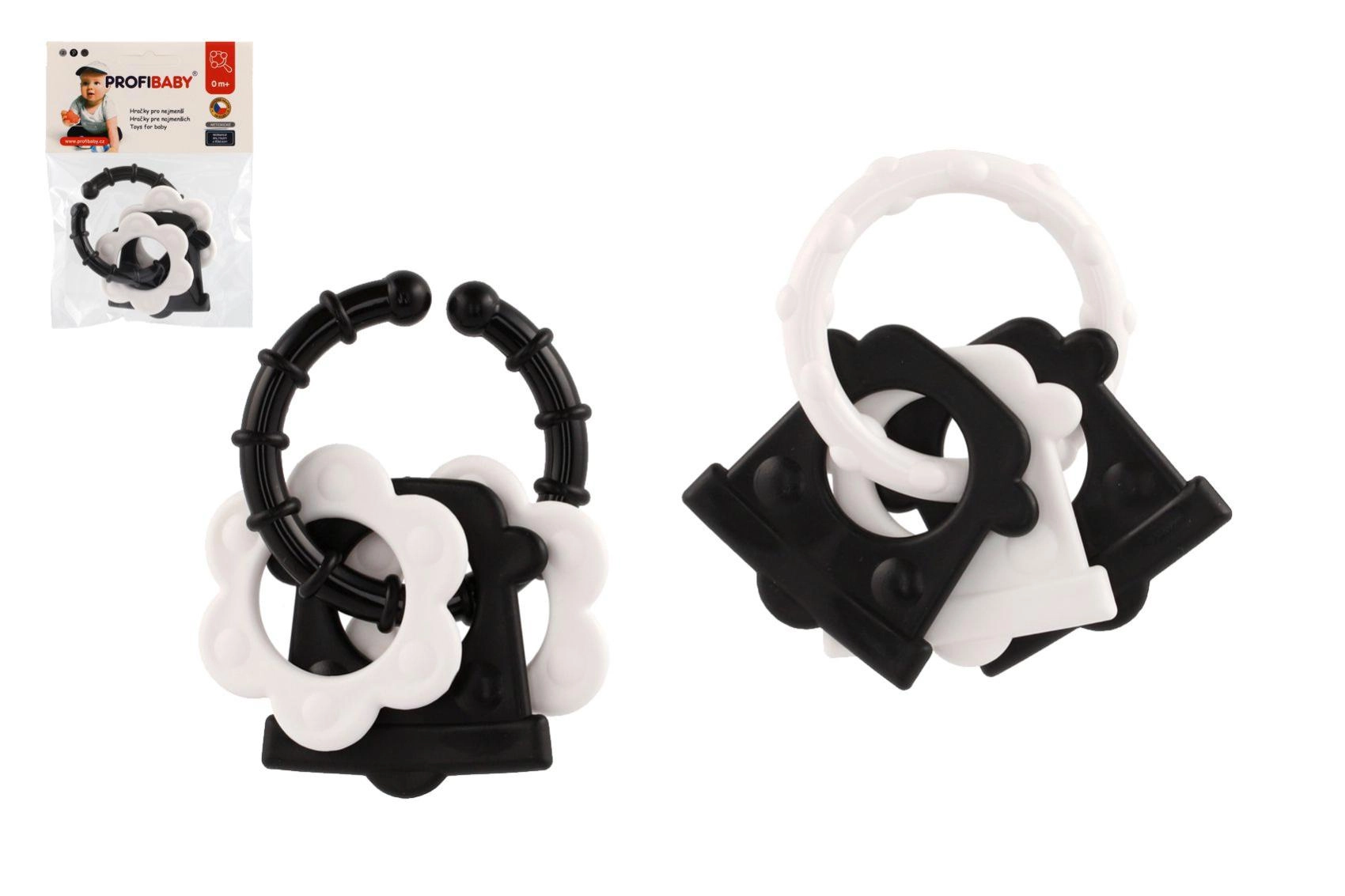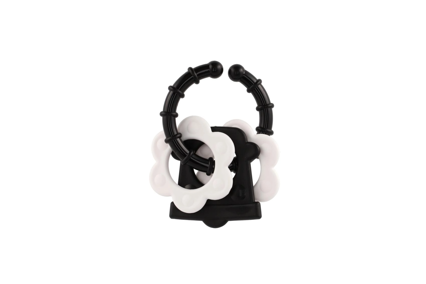 Bijtringen voor baby’s – zwart-witte vormen, rammelaar en handvat