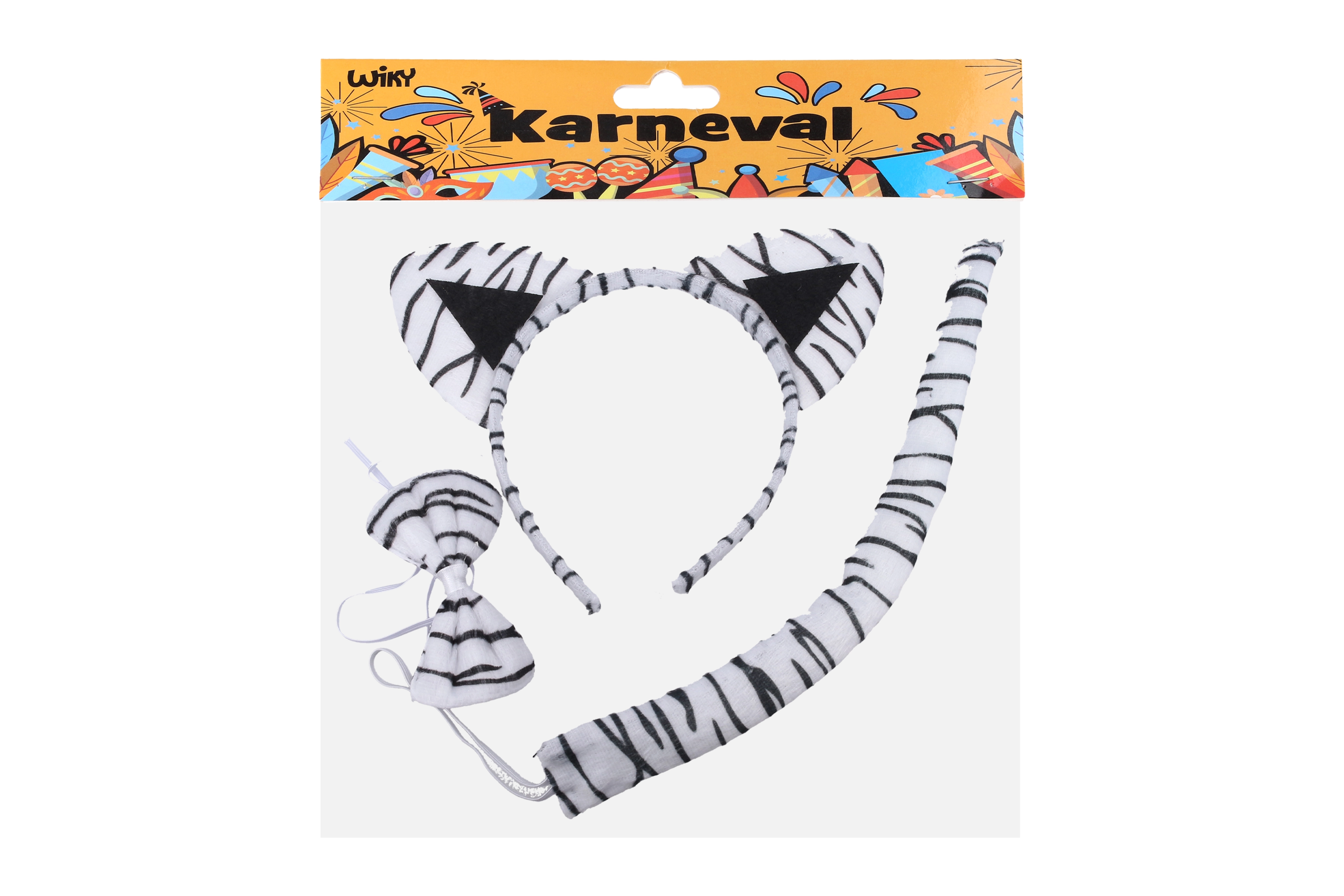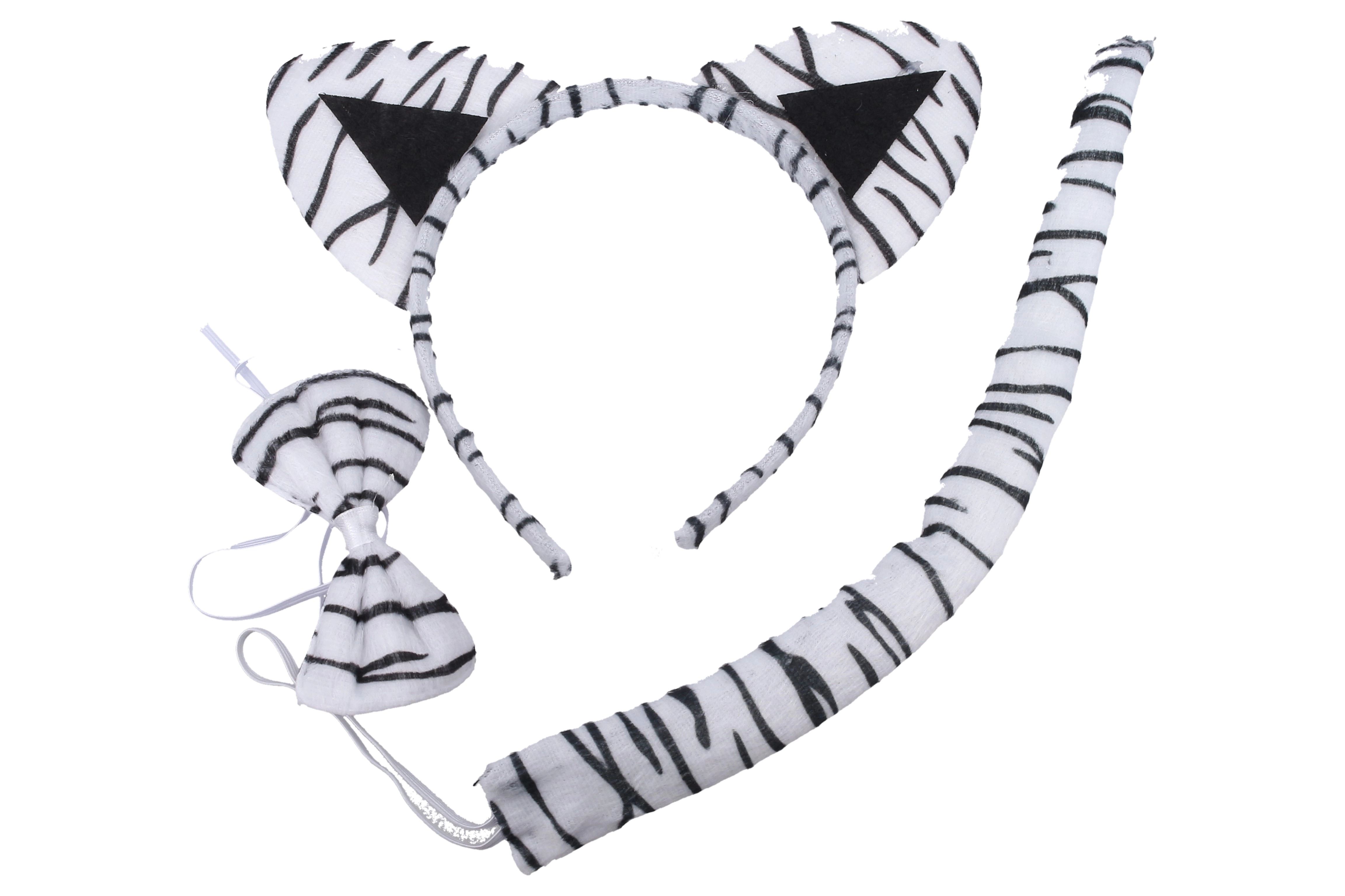 Carnavalsset – witte tijger (haarband, staart en vlinderdas)