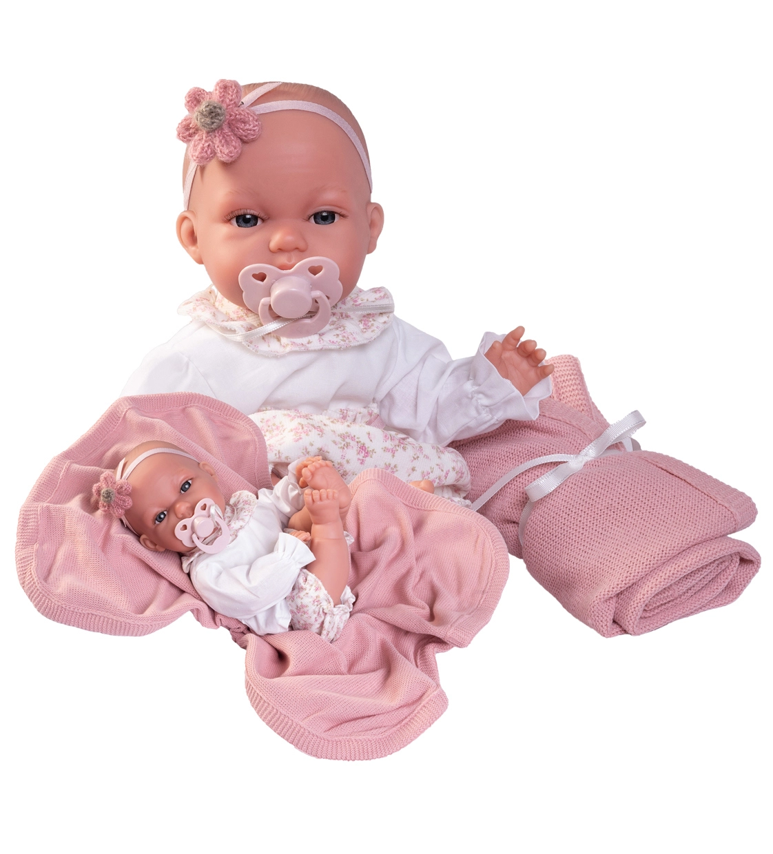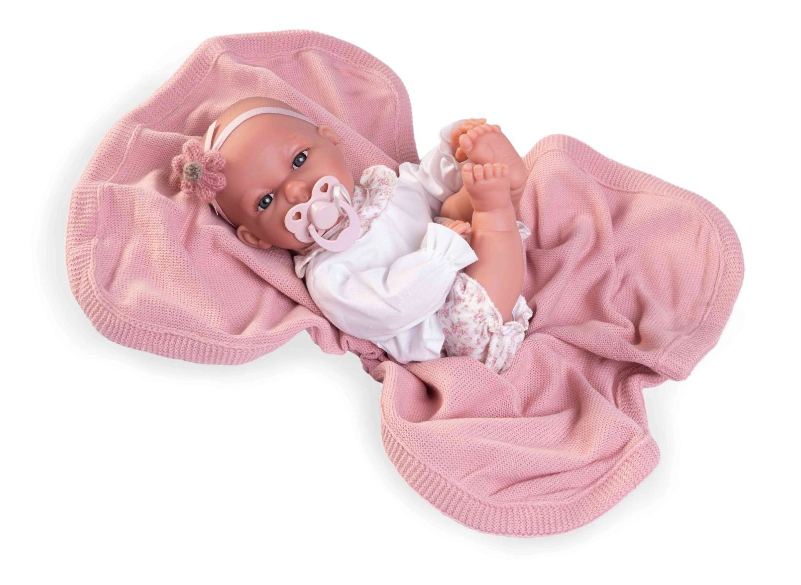 Antonio Juan Clara – realistische pratende babypop, zacht stoffen lichaam, 34 cm