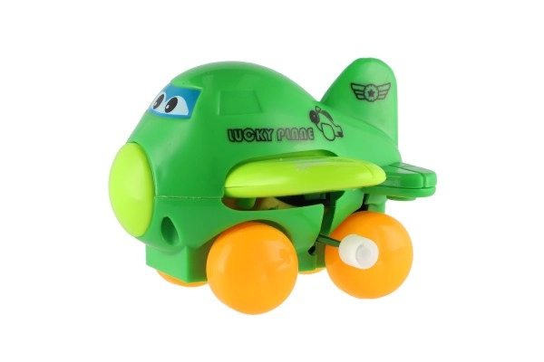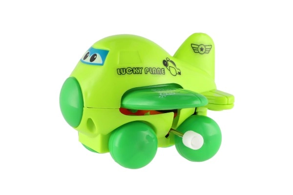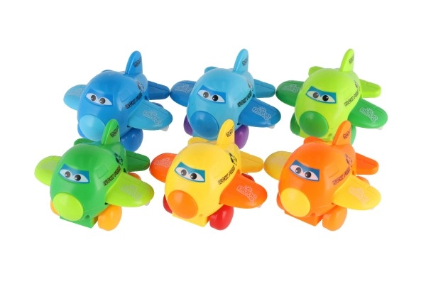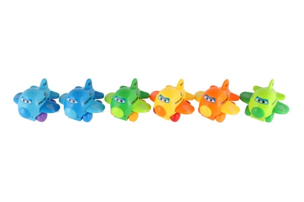 Ophwindbaar vliegtuigje met oogjes – klapperende vleugels, kunststof 8 cm, mix kleuren