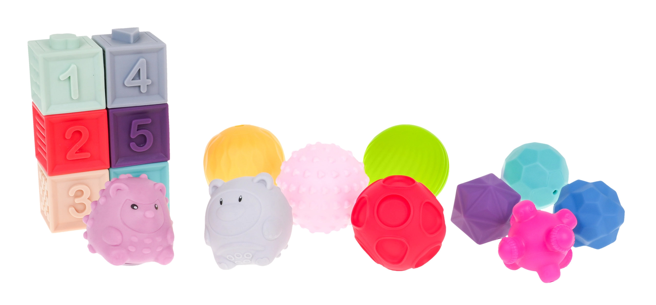 Sensorische set van foam voor kinderen 6m+ – ballen, blokken en diertjes, 16 stuks