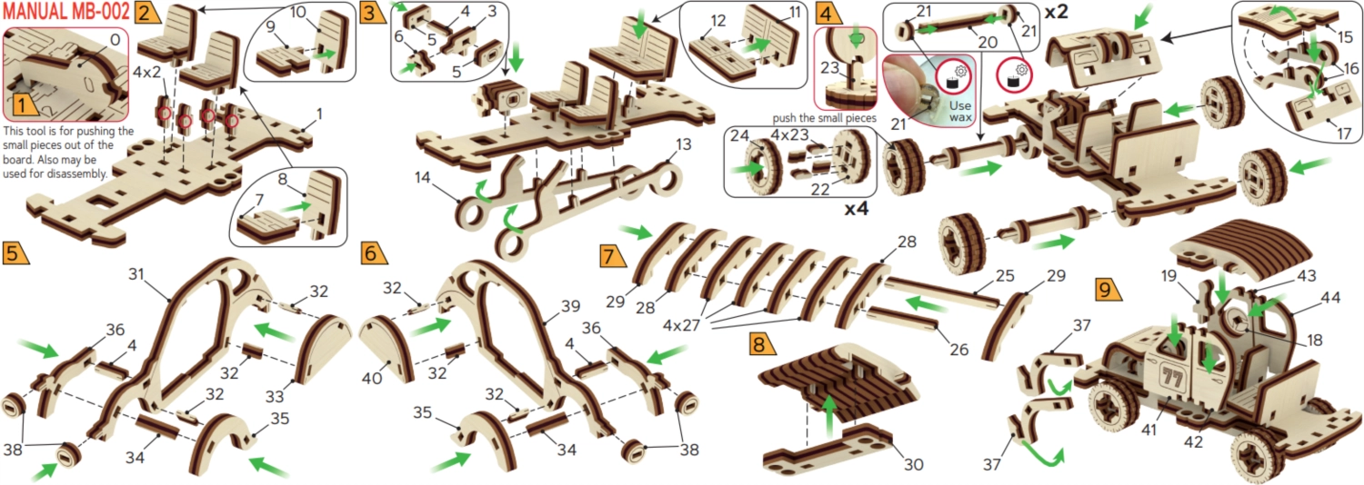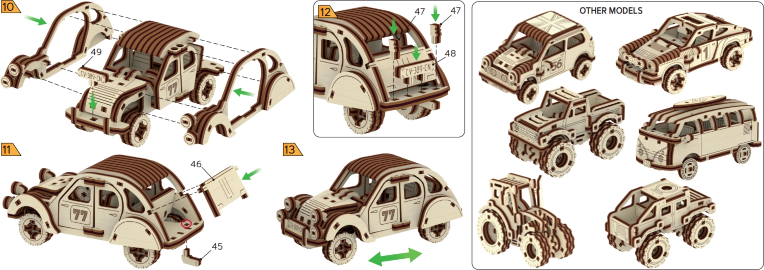 Houten mechanische 3D-puzzel mini buggy UGEARS, 80 stukjes