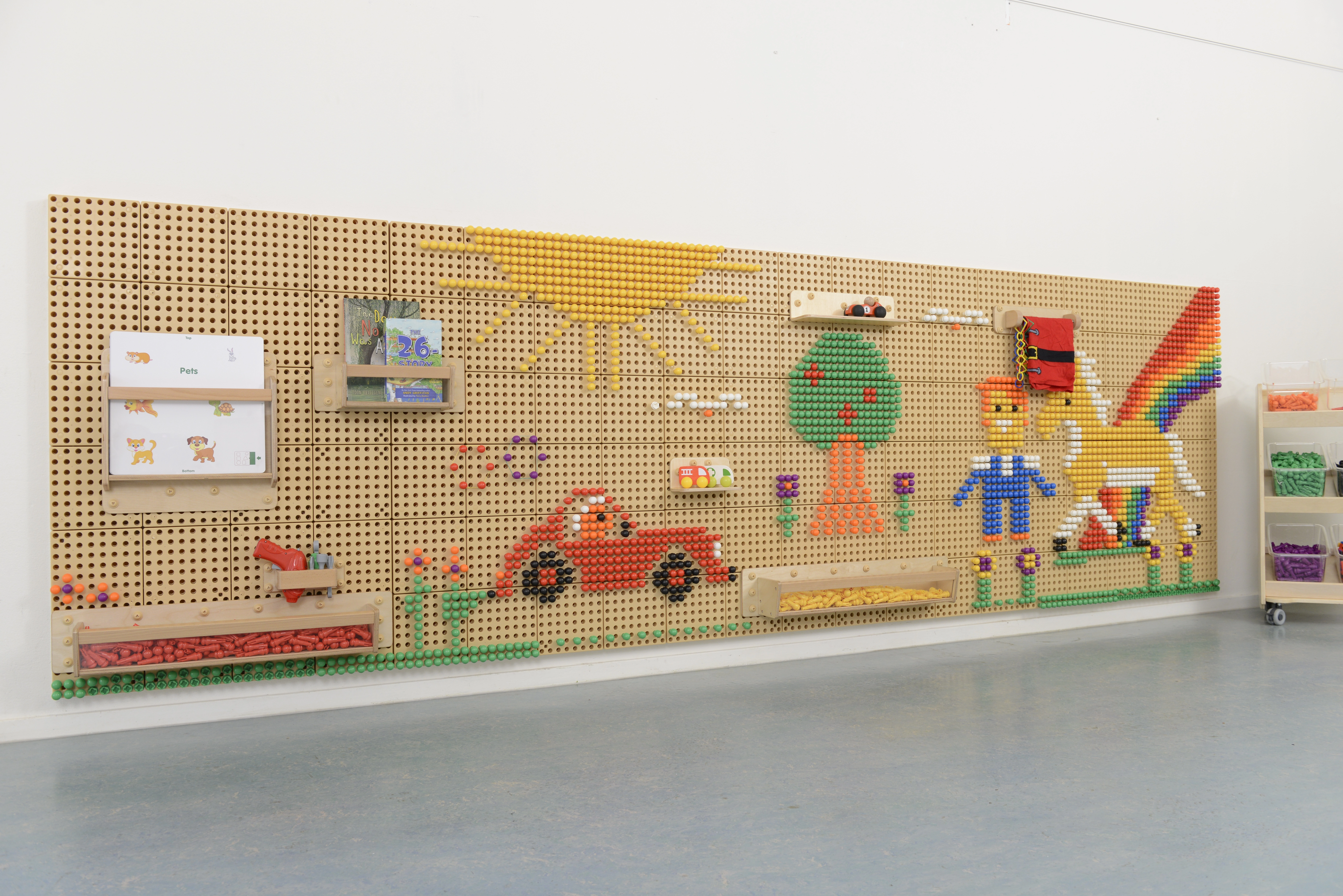 Masterkidz wandgemonteerd creatief STEM-bord met montagepaneel 120 × 80 cm