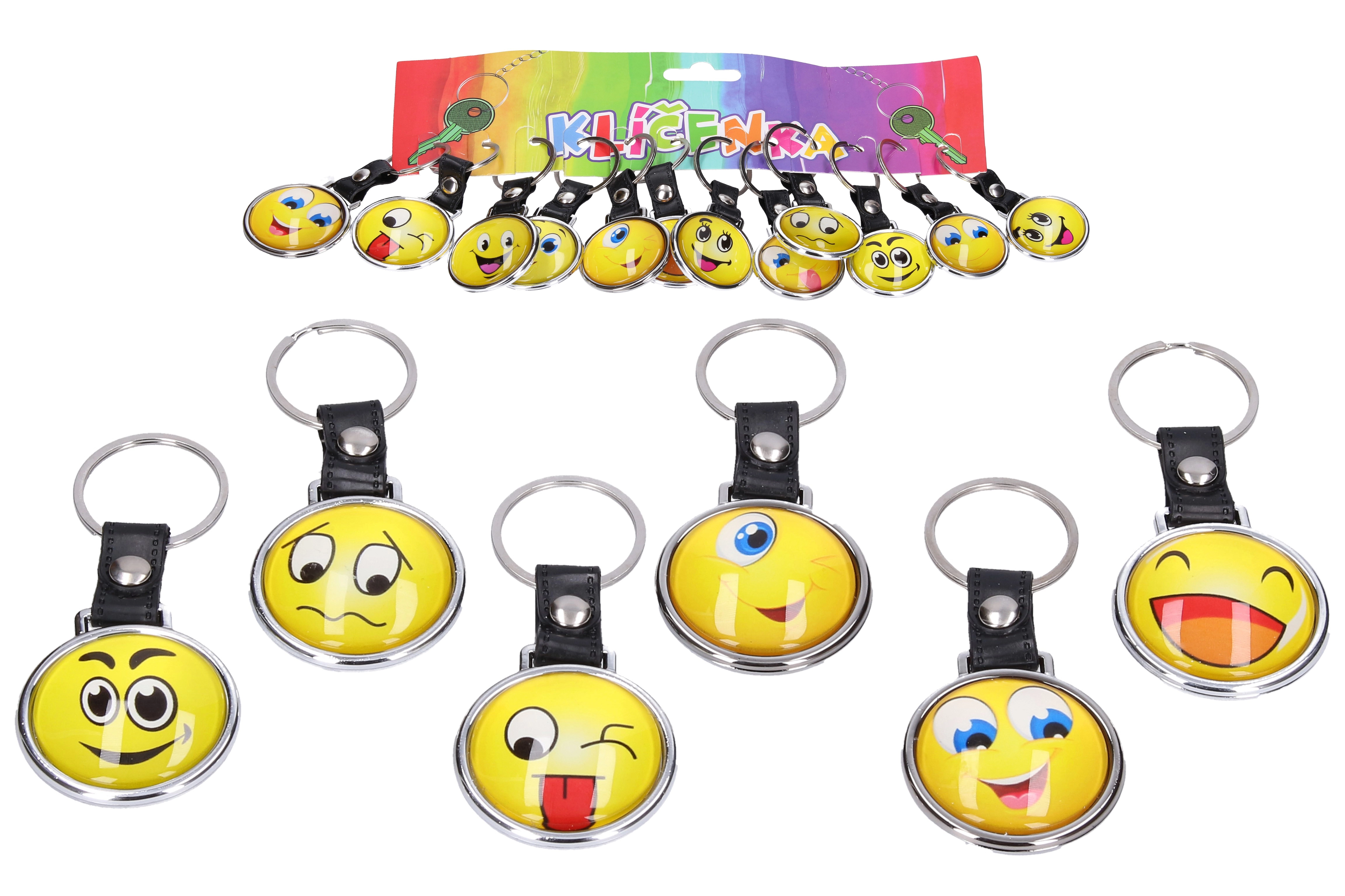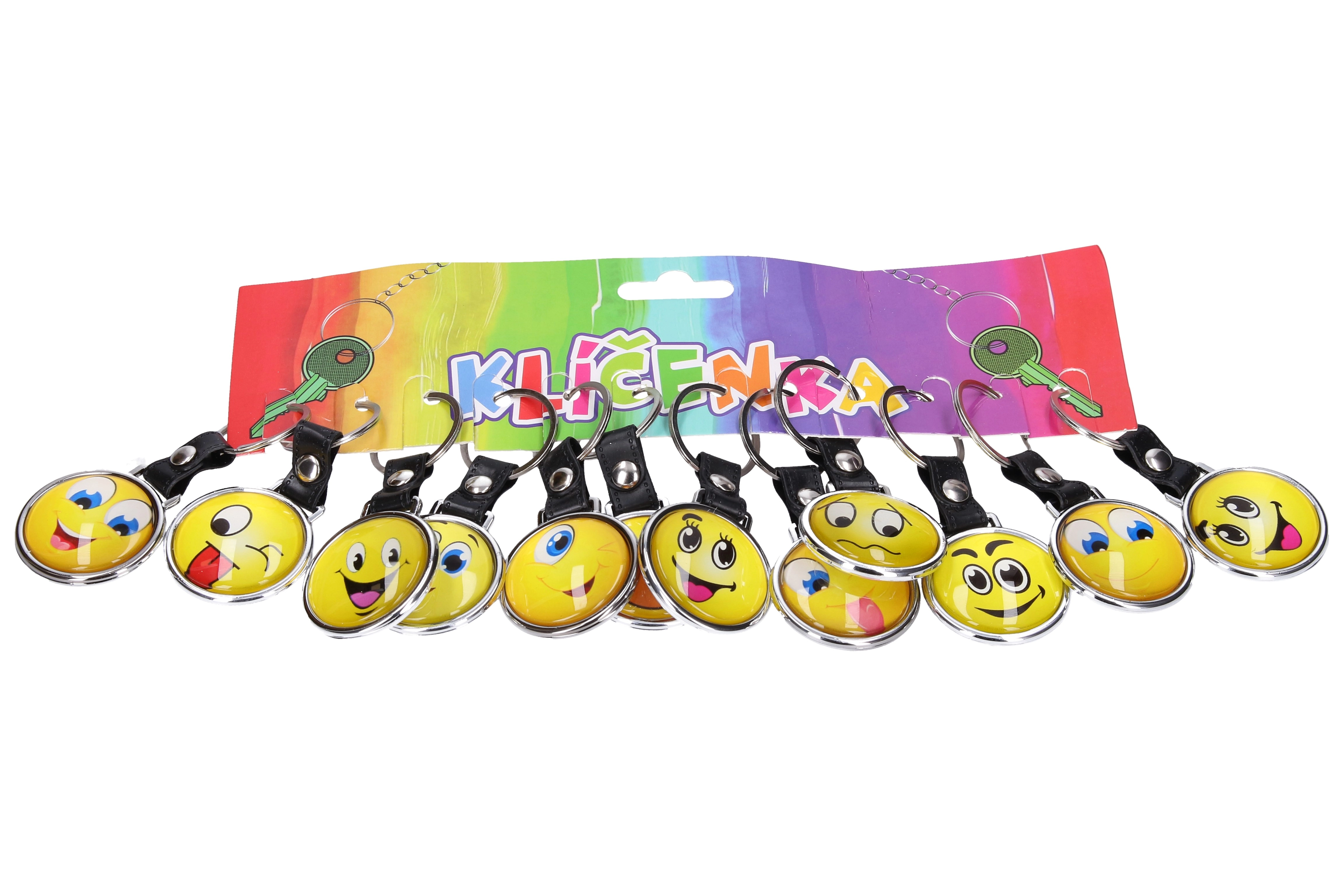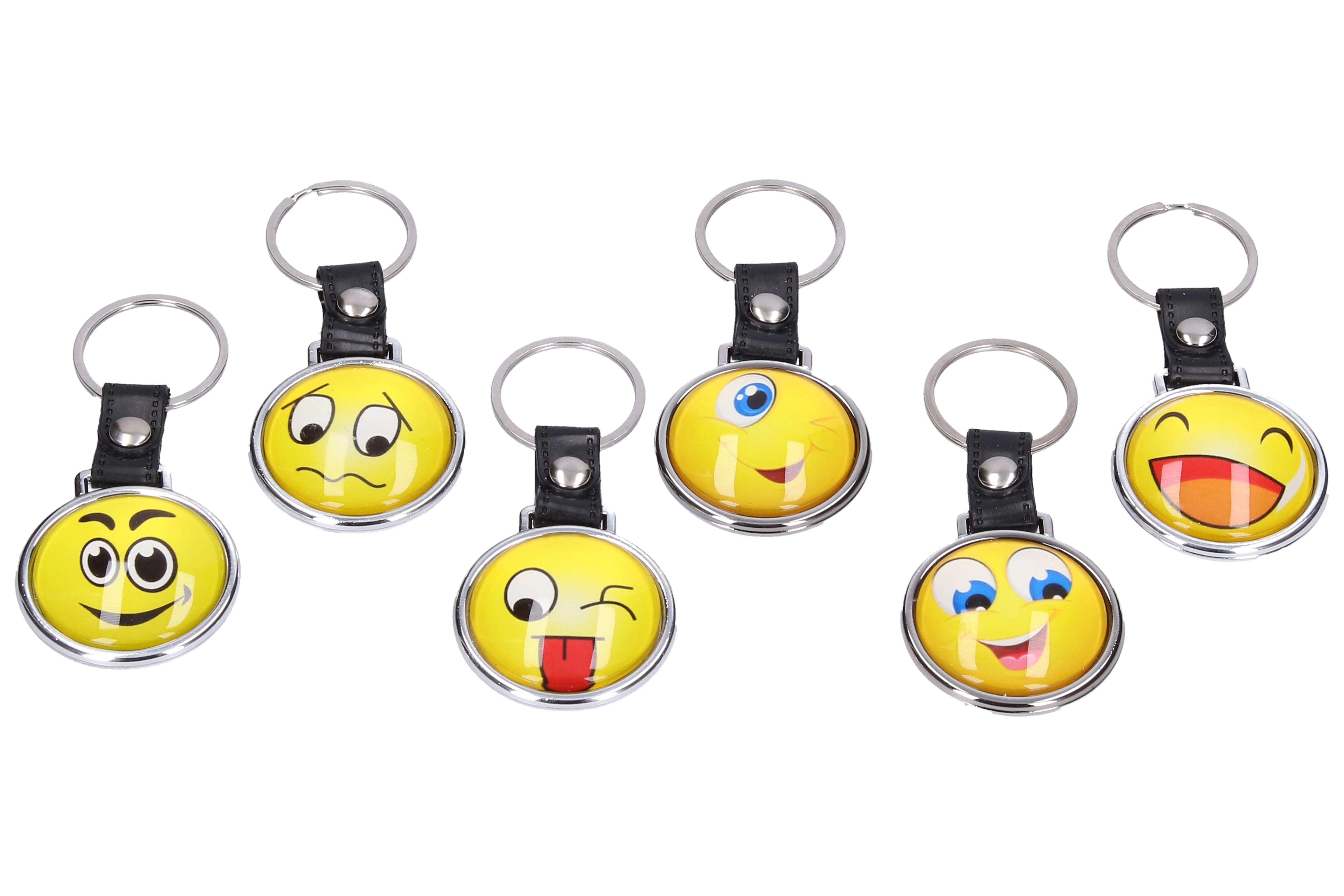Sleutelhanger met smiley – glinsterende dubbelzijdige hanger 4 cm