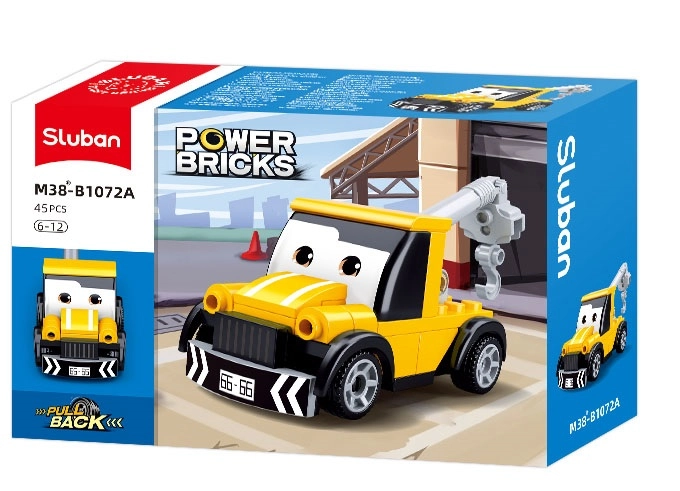 Sluban Power Bricks opwindbare gele sleepwagen met ogen