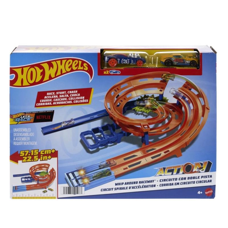Vrachtwagen met uitschuifbare racetrack 2-in-1, licht en geluid, politieautootjes, blauw