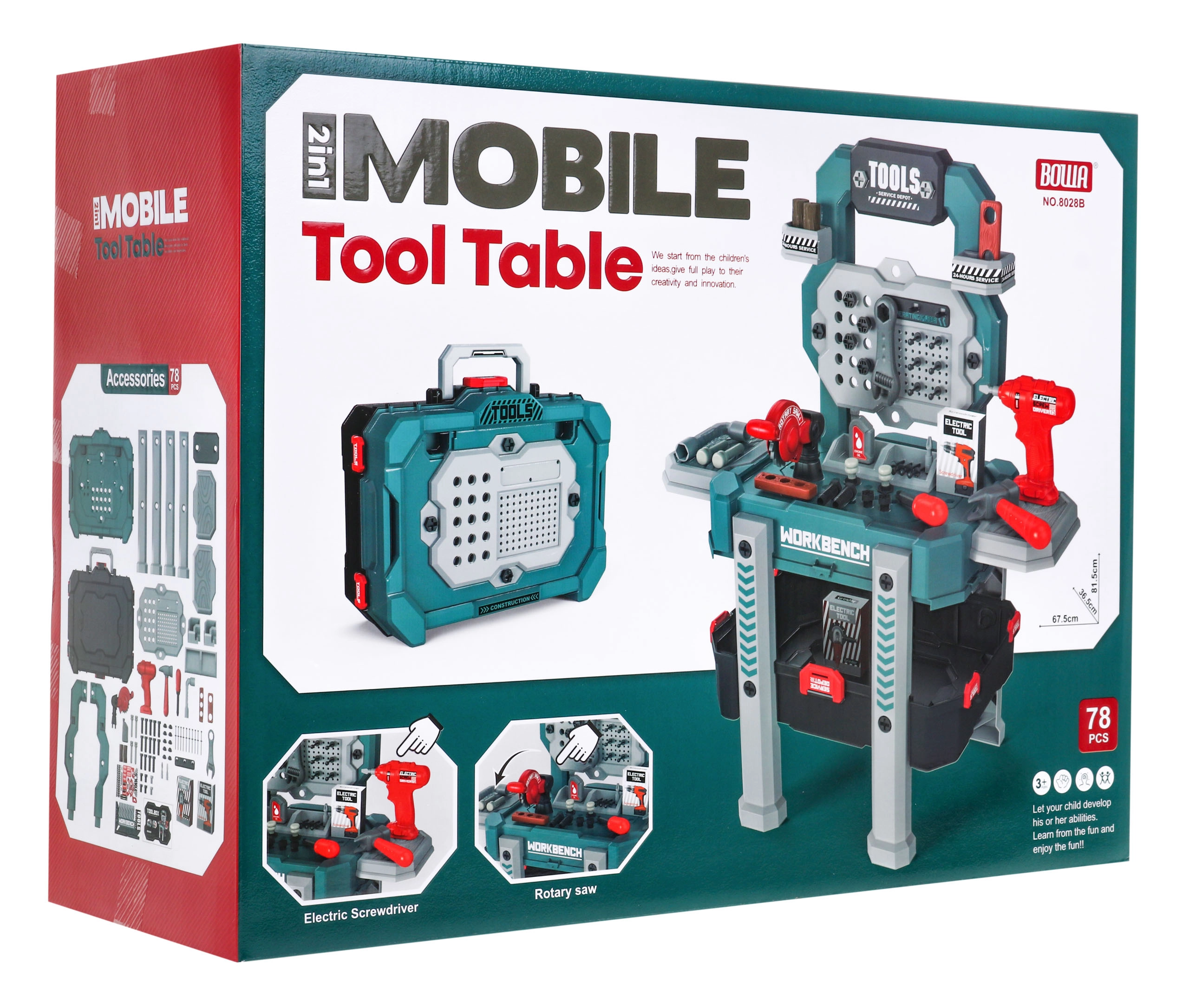 Kinderwerkbank 2-in-1 – koffer en werktafel – Blauw
