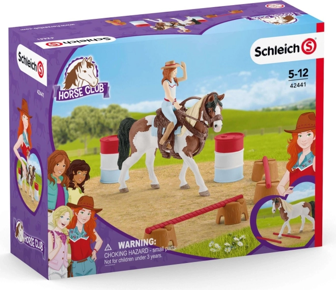 Beleef de spannende wereld van westernrijden met de Schleich Horse Club set. Bevat een figuur van Hannah met beweegbare armen, een prachtige merrie met afneembaar zadel en hoofdstel, en obstakels voor barrel racing training. Ideaal voor kinderen van 5–12 jaar en paardenliefhebbers. Detailrijke afwerking, realistische accessoires en creatief spel prikkelen fantasie en vaardigheden.